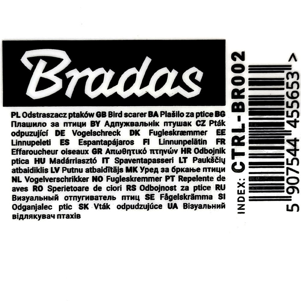 Die BRADAS-Fensteraufkleber werden aus hochwertigen Materialien hergestellt, die eine jahrelange Nutzung des Produkts garantieren. Die Aufkleber sind wasserfest und aus schwarzer, selbstklebender Folie.