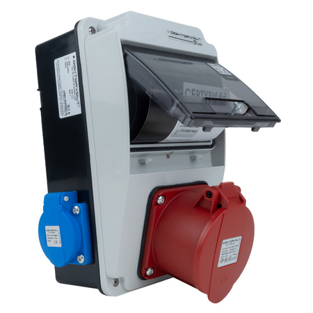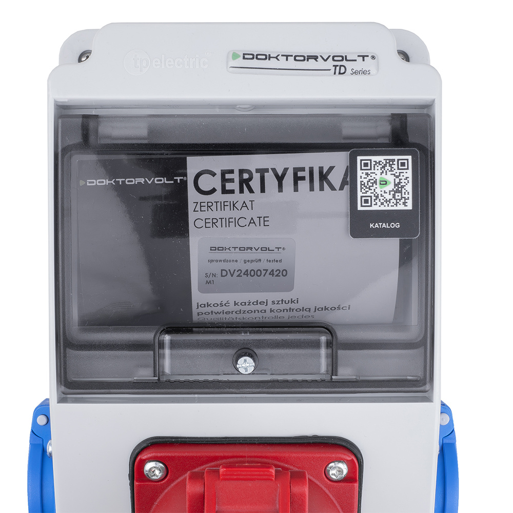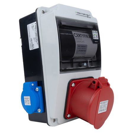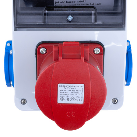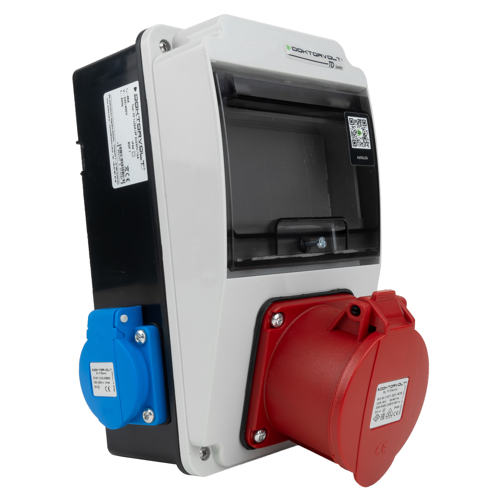 Hochwertiger Verteiler XS DV-5084-D 32A 2x230V ohne Absicherung. Ausgestattet mit Steckdosen der renommierten Marke DOKTORVOLT. Die Schutzart IP44 weist auf die Widerstandsfähigkeit des Stromverteilers gegenüber potentiellen Risikofaktoren hin.