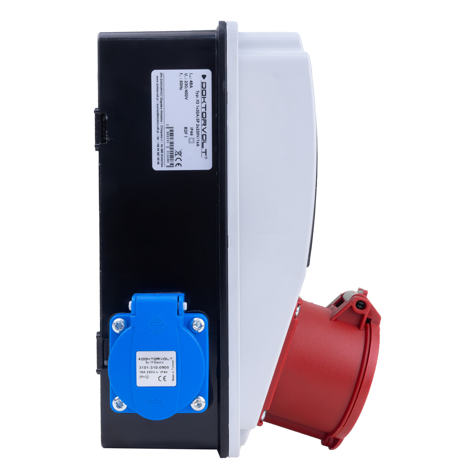 - Hochwertiger Baustromverteiler XS DV-5084-D 32A 2x230V ohne Absicherung. Ausgestattet mit Steckdosen der renommierten Marke DOKTORVOLT. Schutzart IP44 . Stromverteiler Komplett Verdrahtet.