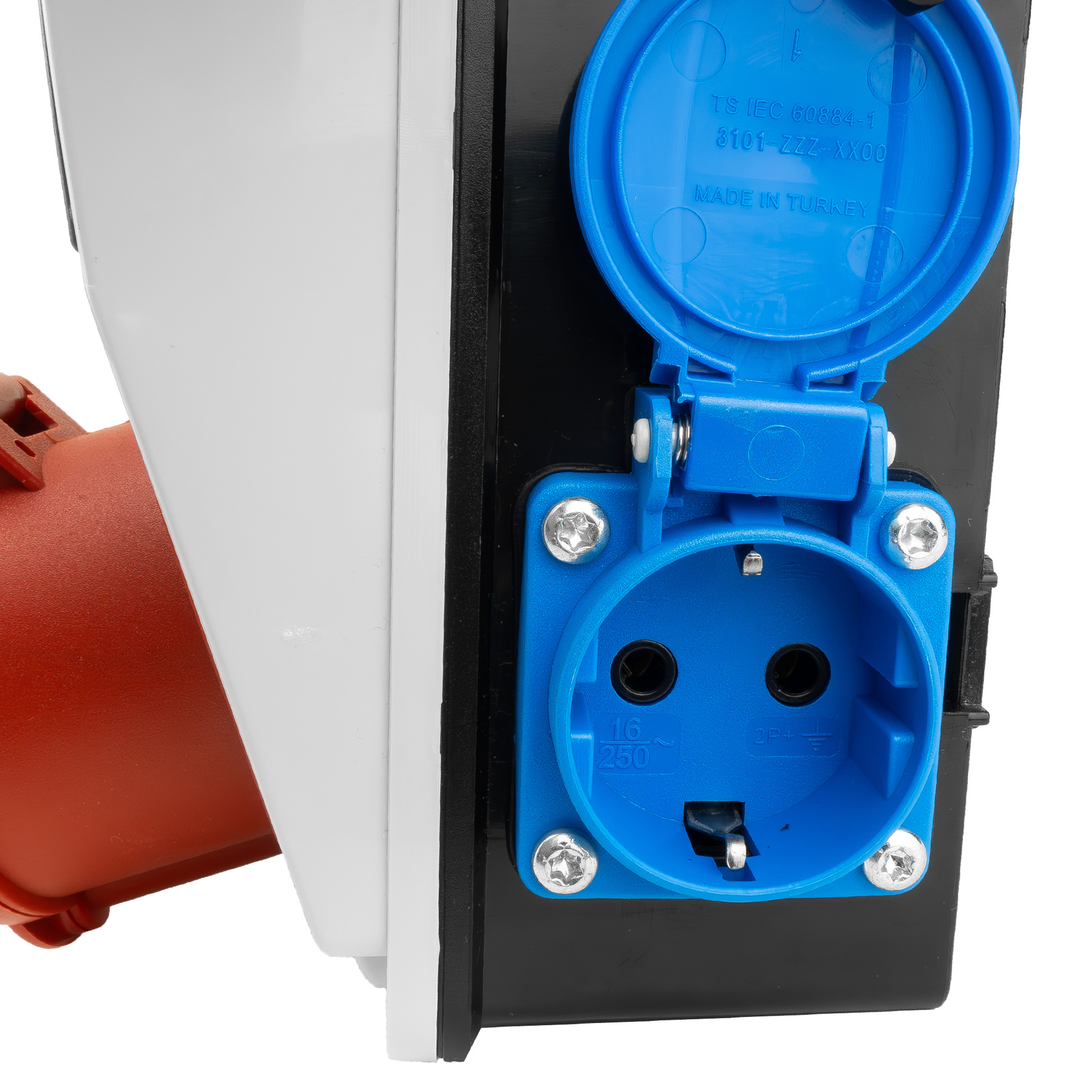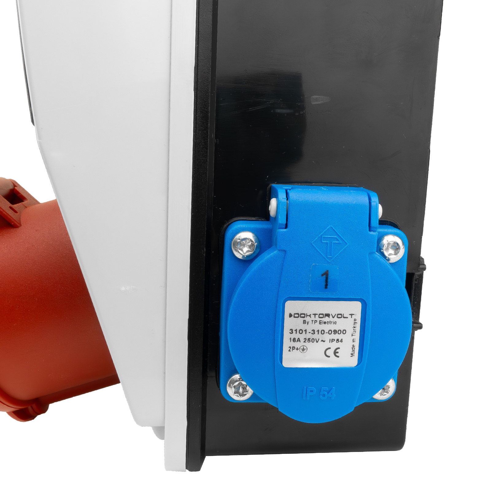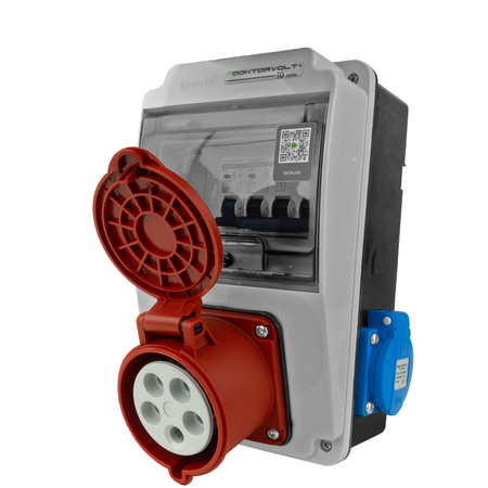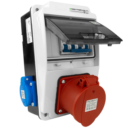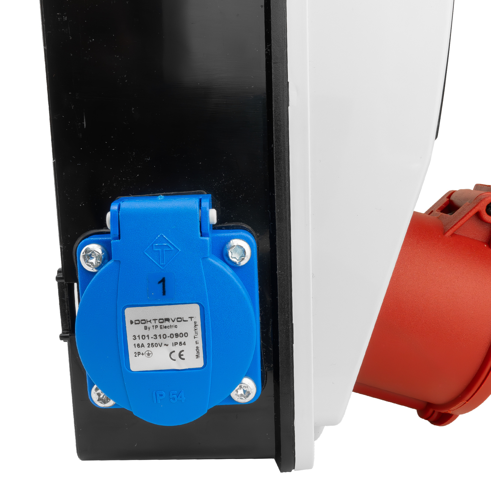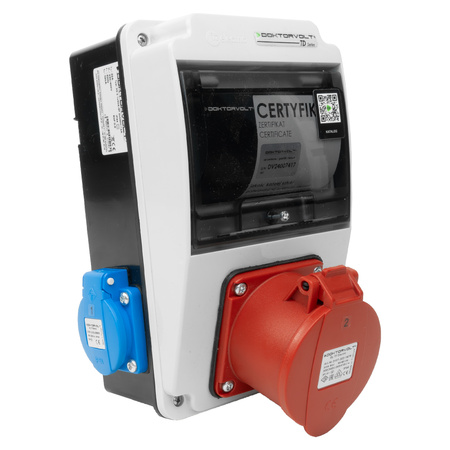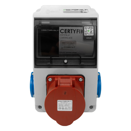 Hochwertiger Verteiler XS DV-5060-D 32A 2x230V mit Absicherung. Ausgestattet mit Steckdosen der renommierten Marke DOKTORVOLT. Die Schutzart IP44 weist auf die Widerstandsfähigkeit des Stromverteilers gegenüber potentiellen Risikofaktoren hin.