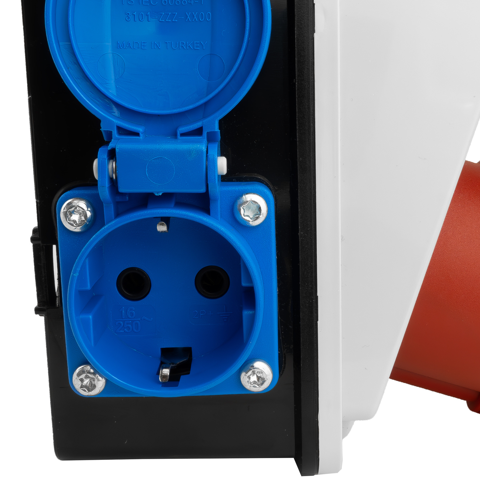 1 x dreiphasig CEE: 3P + N + PE, 32 A, 400 V