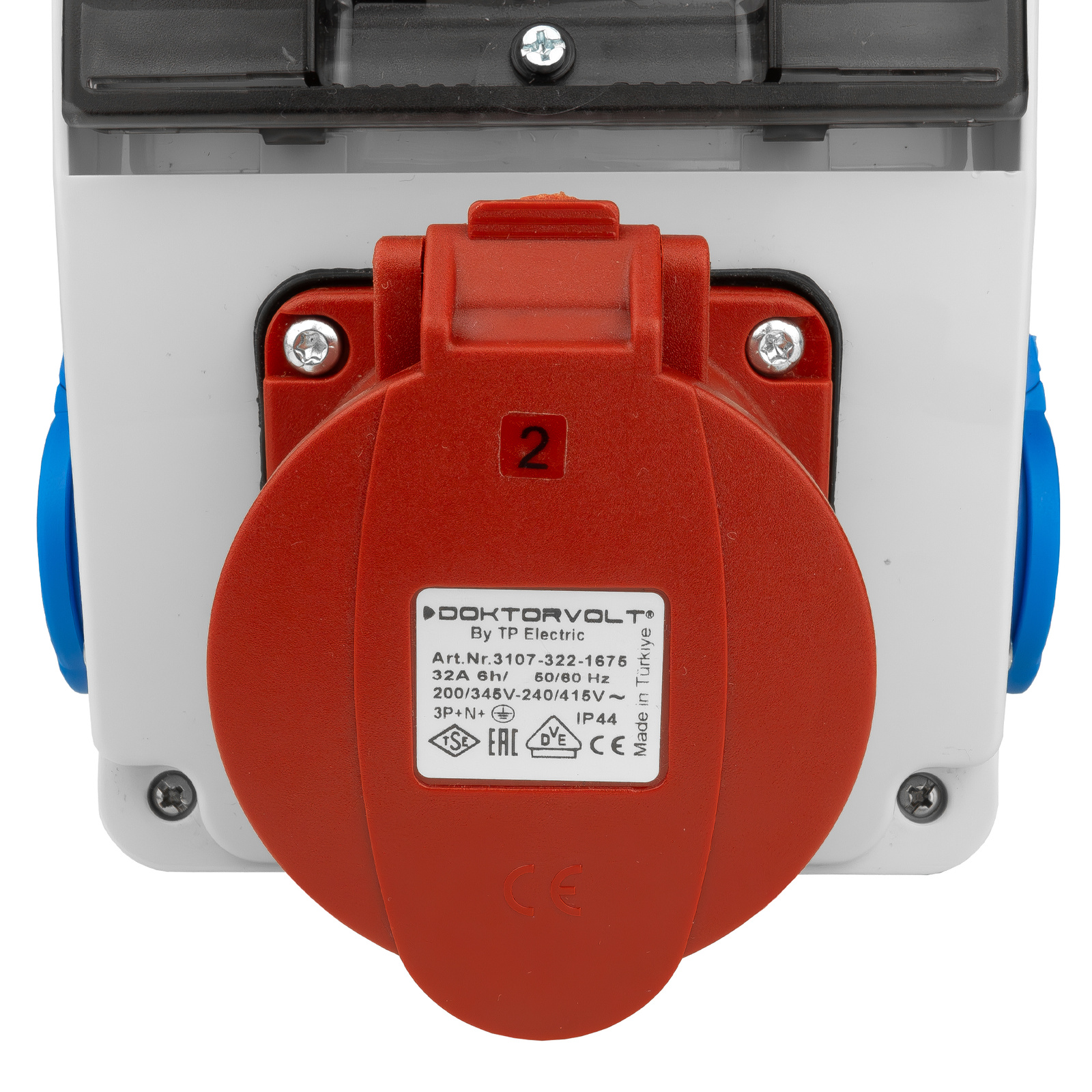 Wandverteiler XS-S 32A 2x230V IP44 Stromverteiler Komplett Verdrahtet Doktorvolt DV-5077-F