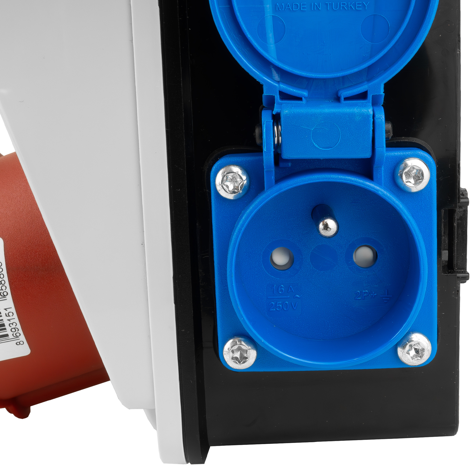 2 x einphasig (Typ E): 1P + N + PE, 16 A, 230 V