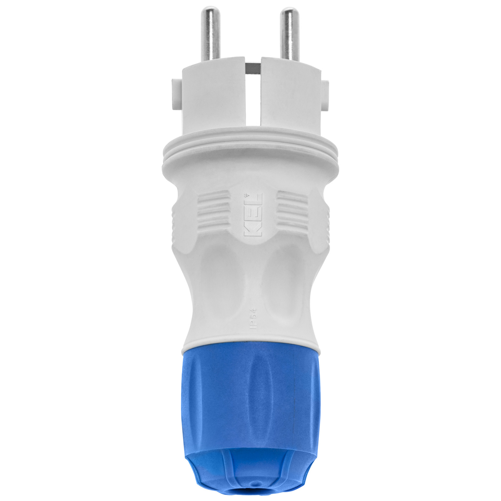 - Robuster, zerlegbarer Uni-Schuko-Stecker 2P+Z mit Schutzart IP54, geeignet für 16A und 250V. Ausgestattet mit blauen Verschraubung, staub- und spritzwassergeschützt. Ideal für Industrie- und Außeneinsätze.