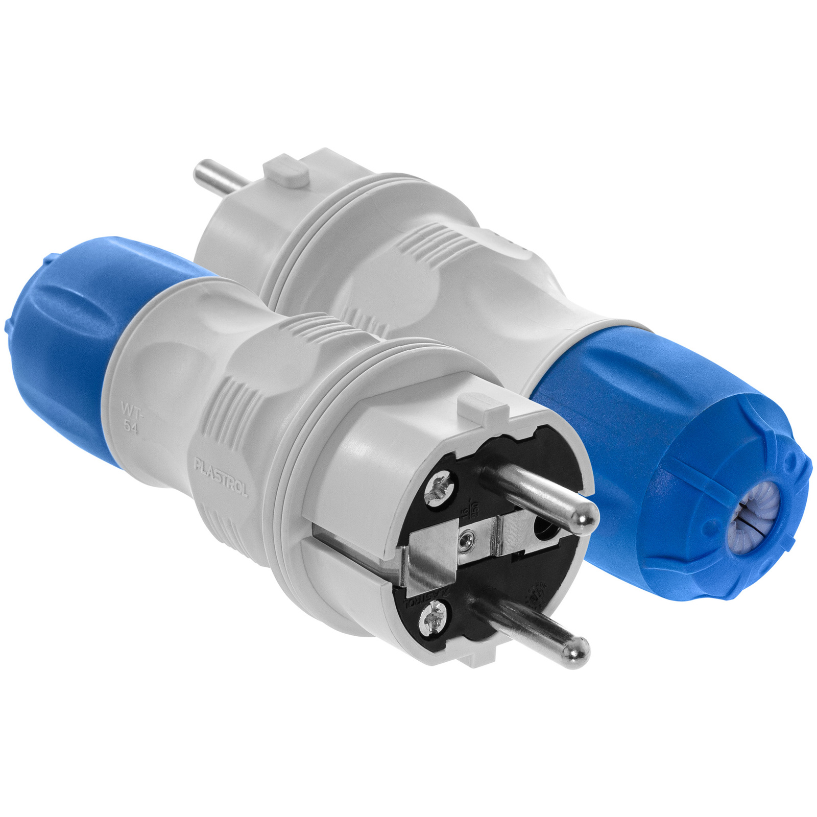 Zerlegbarer gerader Stecker WT-54 IP54 2P+E 16A 250V Uni-Schuko grau-blau W-97976