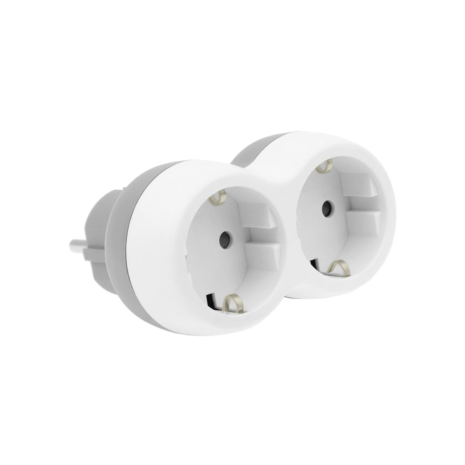 Zweifach Steckdosenadapter 2x Schuko 230V Grau-Weiß W-72004