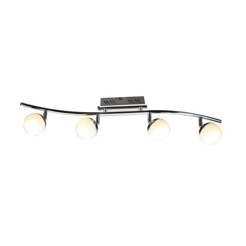 An der Decke montierte, vierfach regulierbare Leuchte aus Edelstahl und Glas, chromfarben mit einstellbarer Lichtrichtung. Ausgestattet mit einer 4 x 6W SMD-LED-Lichtquelle und einer warmweißen Lichtfarbe, Lichtverteilungswinkel 120°, hat eine Lebensdauer der Lichtquelle von 30000h. Die Leuchte mit IP20-Widerstand ist für den Einsatz in Innenräumen konzipiert. Der Mindestabstand der Lichtquelle zum beleuchteten Objekt beträgt 50 cm. Die Leuchte ist mit einem Netzteil ausgestattet, sie sollte nicht mit einem Dimmer verwendet werden.