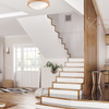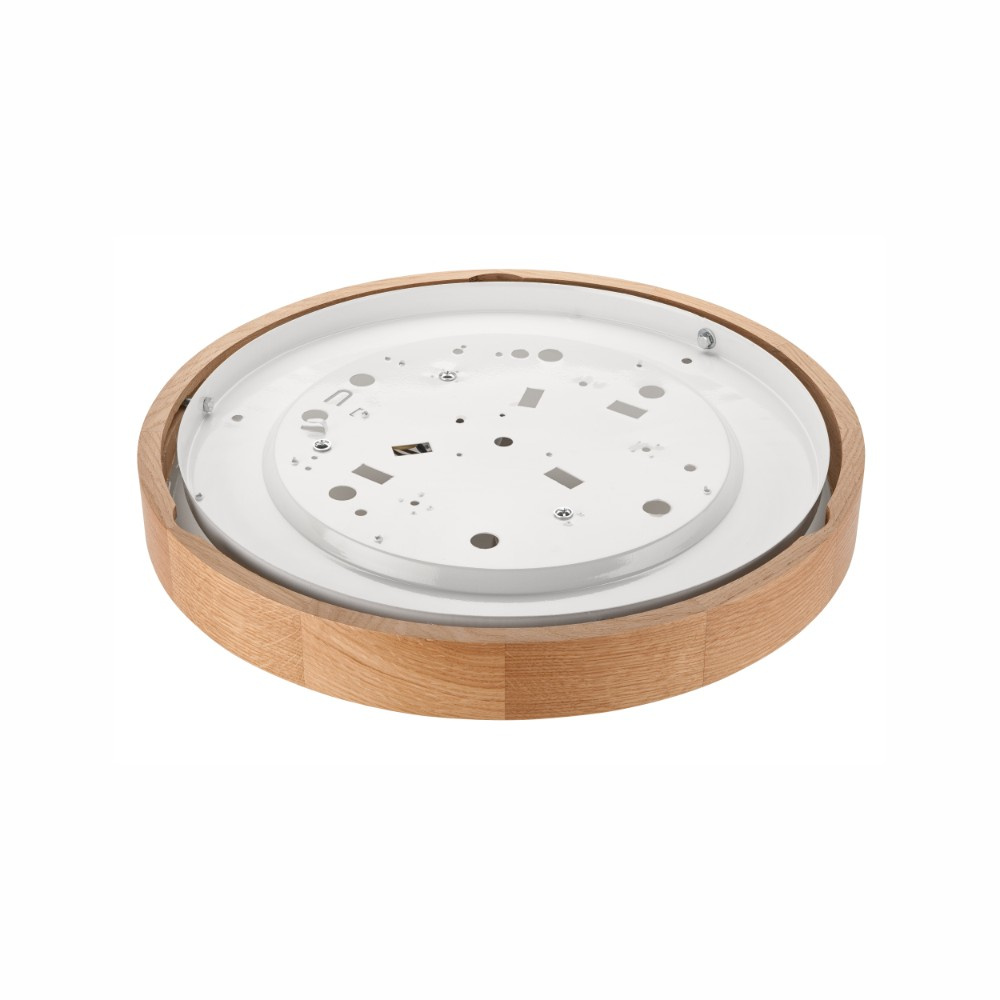 Die Leuchte wird direkt an der Decke oder Wand montiert. Der Holzrahmen haftet vollständig an der Oberfläche.