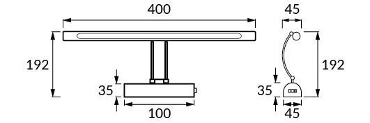 ✔️ Die Abmessungen der Lampe sind: Höhe: 45mm, Breite: 400mm, Tiefe: 192mm,