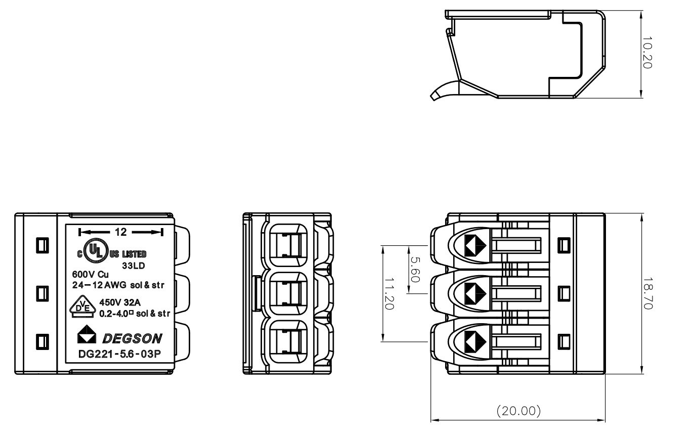 Dosenklemme 3x0.2-4.0 mm² Verbindungsklemme VDE UL 450V 32A DGN 1 Stück 100 Stück DG221-5.6-03P-17-00A