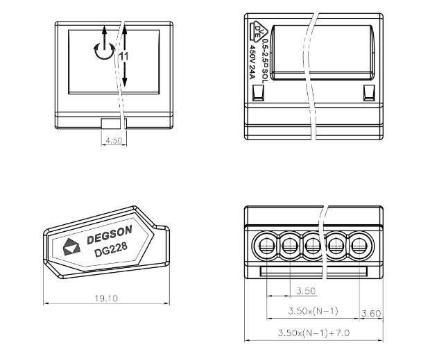 Die Dosenklemmen der Serie DG228-3.5 werden zum Anschluss von Kabeln in Abzweigdosen verwendet. Sie zeichnen sich durch hohe Qualität nach EN60998 und VDE-Zulassung aus. Aufgrund ihrer geringen Größe sind sie leicht zu handhaben, und die hochwertigen Materialien und Qualitätskontrollen im Produktionsprozess sorgen für die Zuverlässigkeit und Sicherheit der Verbindungsklemmen für DG228-3.5 Anschlussdosen.