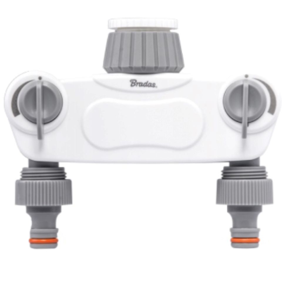 • 2-Wege-Verteiler mit Ventilen am Wasserhahn 1" mit Reduktion auf 3/4" 1557 White Line Bradas den Garten gießen Bradas Preis-Zone