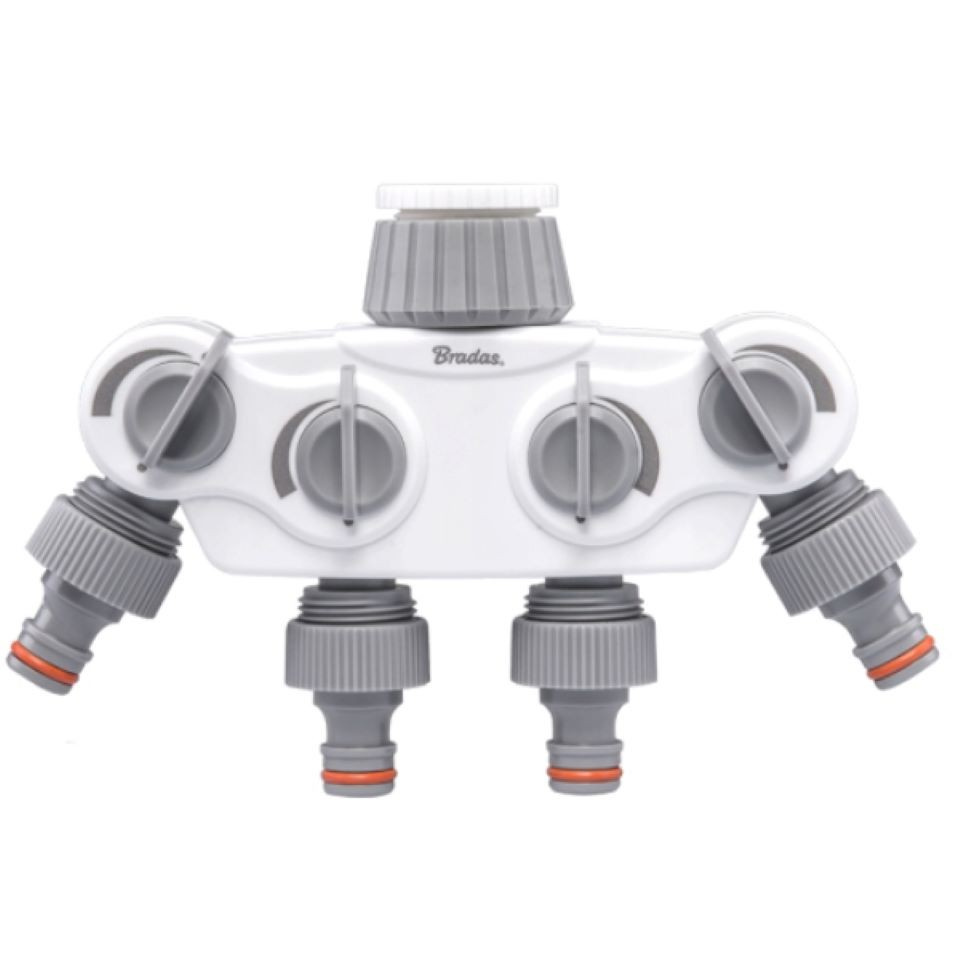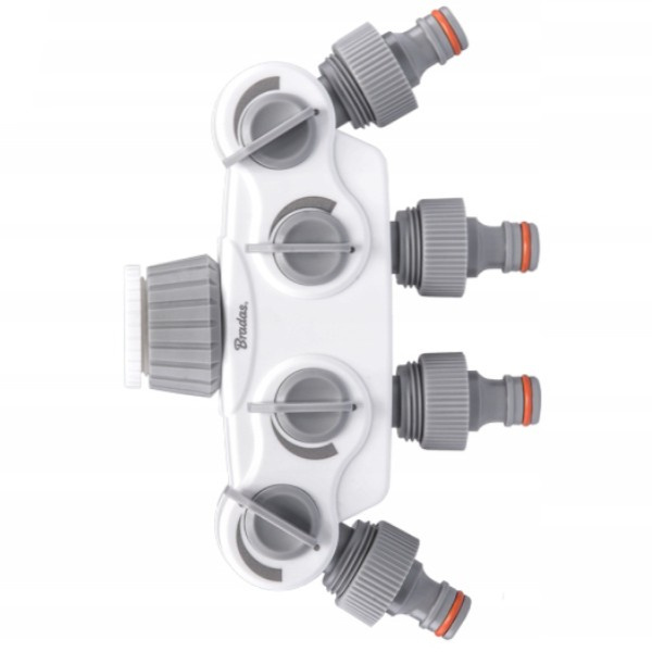 - 4-Wege-Verteiler mit Ventilen am Wasserhahn 1" mit Reduktion auf 3/4" 1564 White Line Bradas den Garten gießen Bradas Preis-Zone