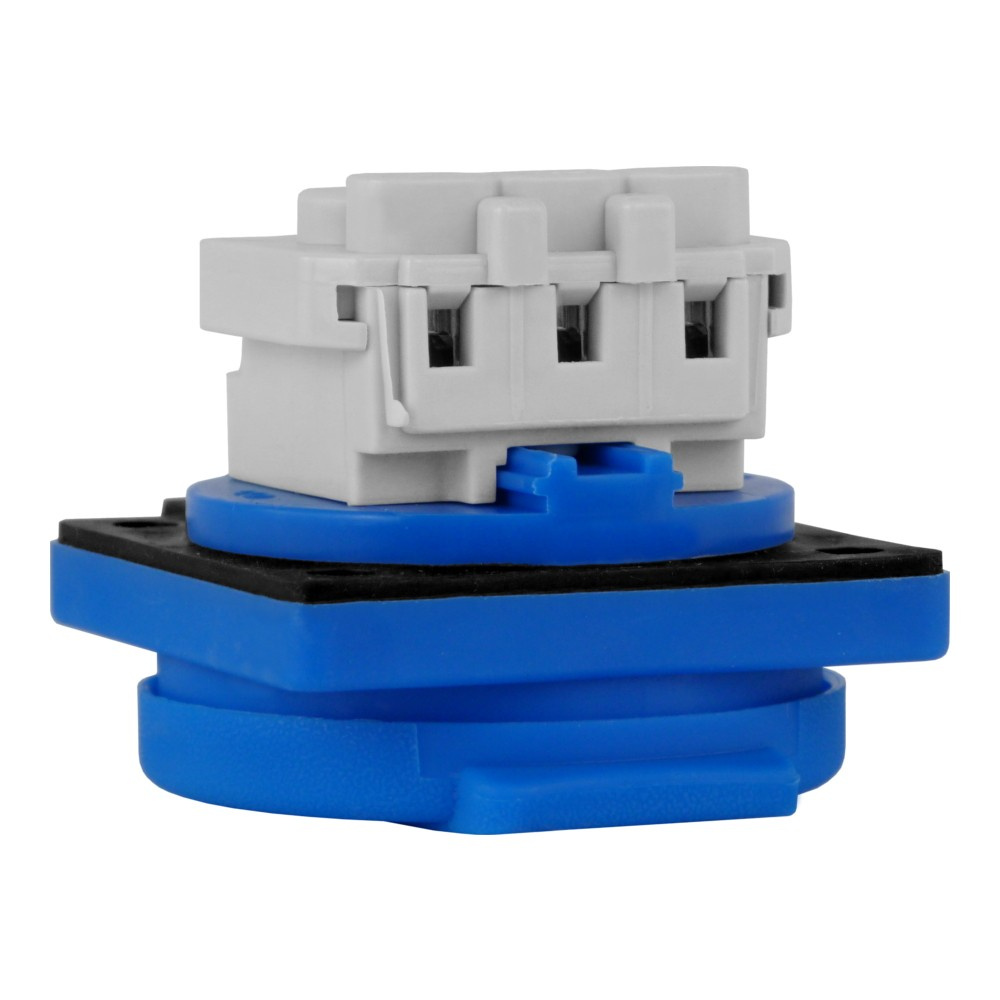 230V-Steckdose von Bals mit Quick-Connect-System in blau. Einphasige Steckdose mit Erdungsstift und Schutzart IP54.