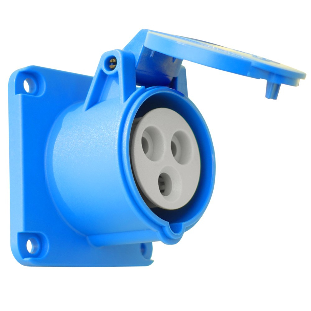 CEE Anbausteckdose 230V IP44, geeignet für Industrie, Lager, Produktionshallen und Bauwesen. Robuste Konstruktion und vernickelte Kontakte gewährleisten Haltbarkeit und Zuverlässigkeit unter anspruchsvollen Bedingungen.