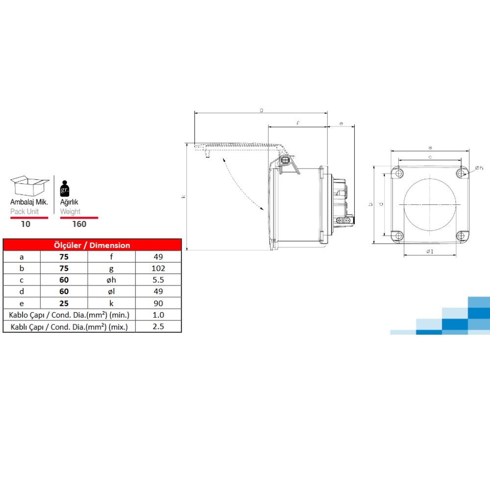 CEE Einbausteckdose gerade 400V 16A 4P 75x75 mm 3122-322-1675