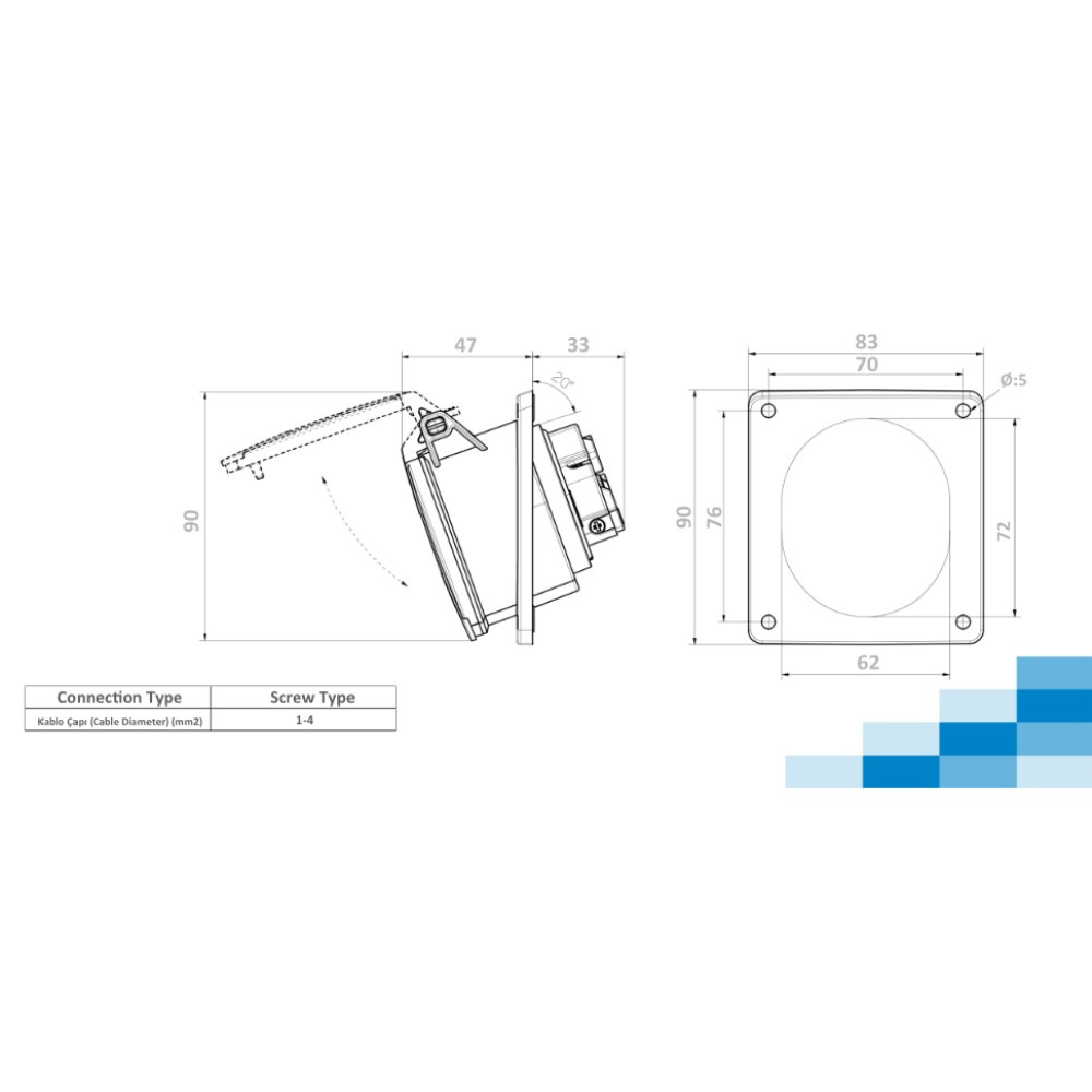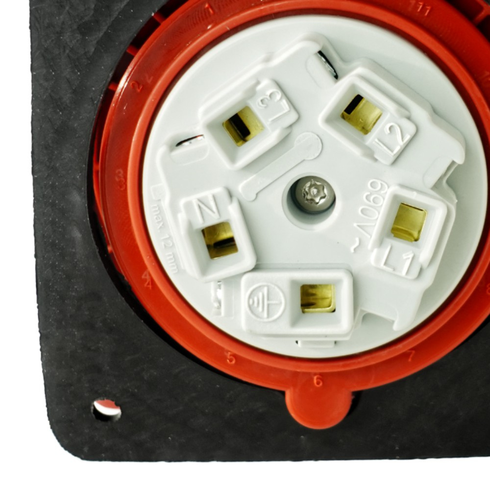 ➡️ Hochwertige 400V Einbausteckdose mit schräger Ausführung, Schutzart IP44.
