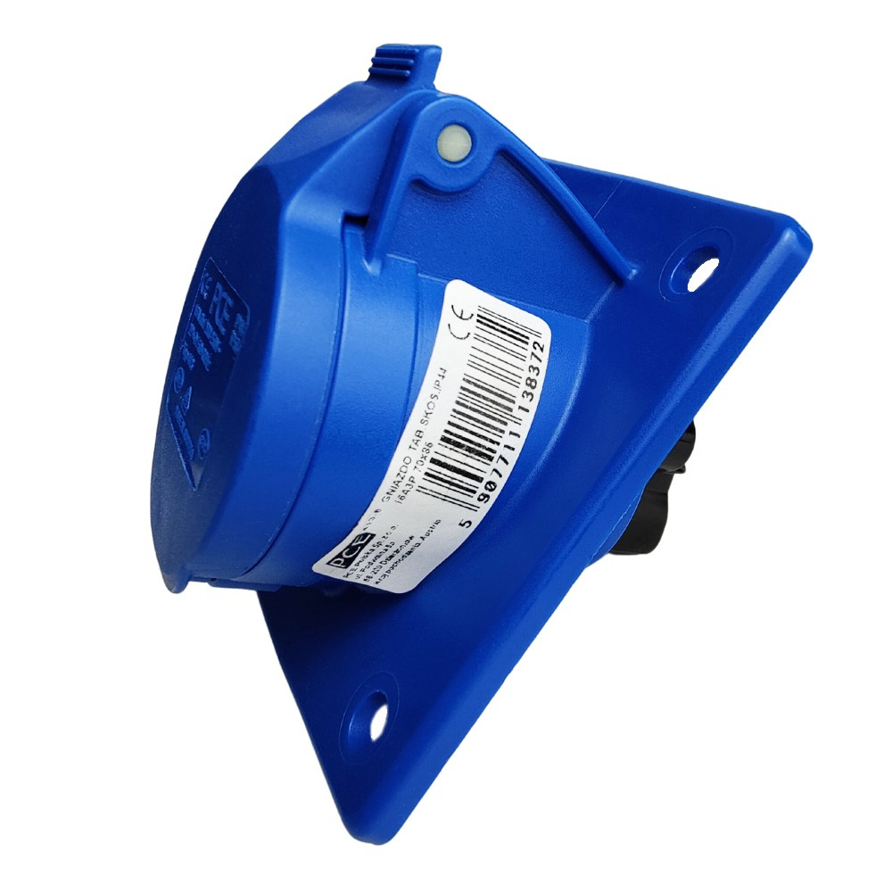 Einbausteckdose schräg 16A 3P 230V mit Klappdeckel