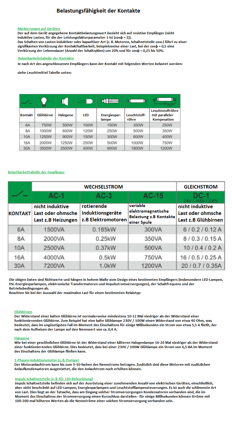 Die oben genannten Daten sind Richtwerte und hängen weitgehend von der Konstruktion des jeweiligen Empfängers (insbesondere LED-Lampen, Energiesparlampen, elektronische Transformatoren und Schaltnetzteile), der Schaltfrequenz und den Betriebsbedingungen ab. Mehr Informationen unter fif.com.pl