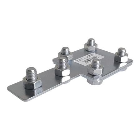 Es dient zum einer Steuerverbindung der Erdungskabel mit der Erdung. Der Verbinder besteht aus zwei 2 mm dicken Teilen, die mit 6 M8-Schrauben zusammengeschraubt sind. Durch Verwendung einer zusätzlichen Messingabstandshalterversion.