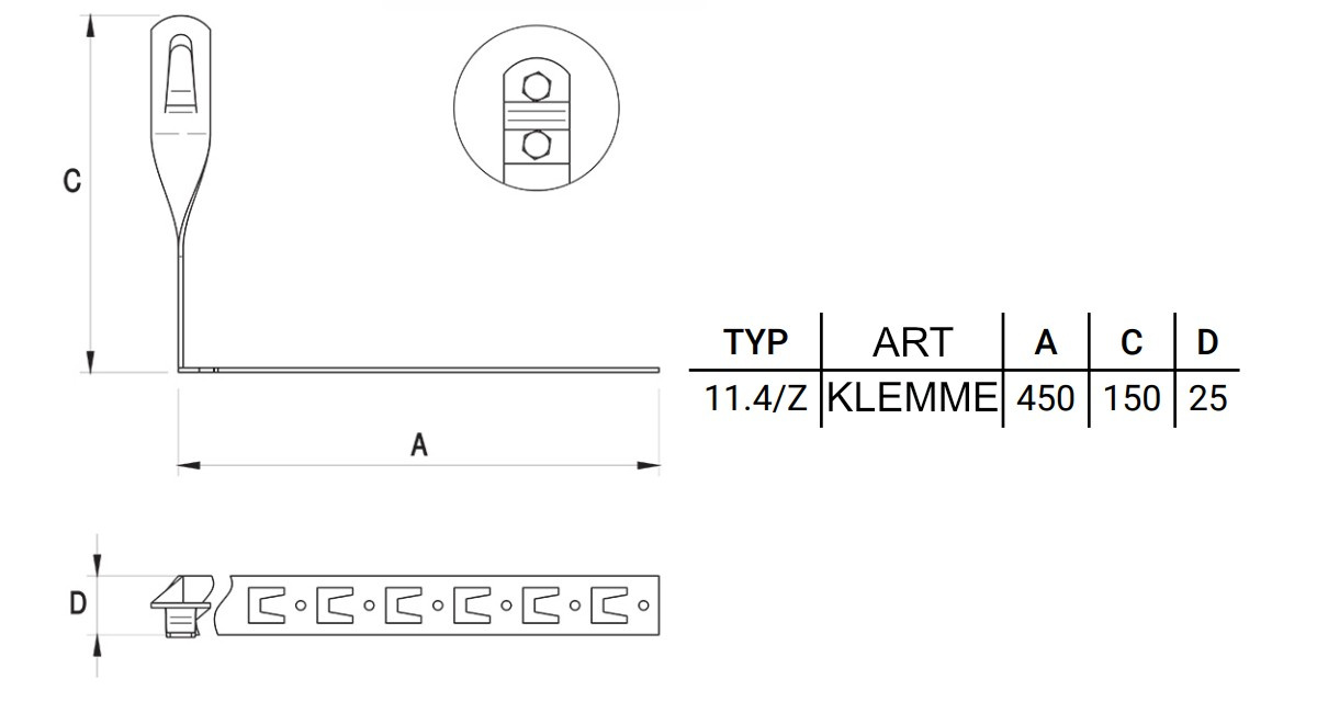 Erdung Dachziegelhalter mit einem Dachhaken Galvanisch verzinkter Stahl 11.4/Z OC