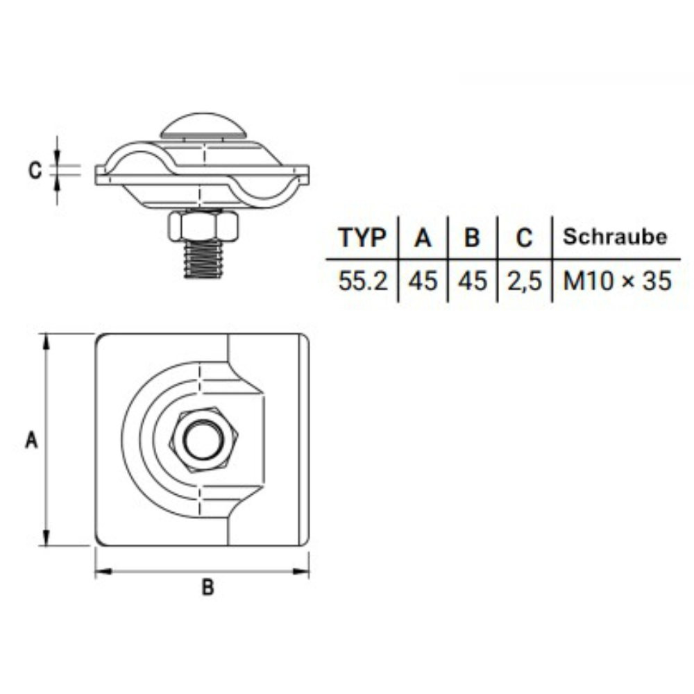Die Querverbindung dient zur Querverbindung von Erdungsdraht oder Drahtverbindung mit Blinken an Dachböden. Der Verbinder besteht aus 2 Teilen mit einer Dicke von 2,5 mm und einer Schraube M8.