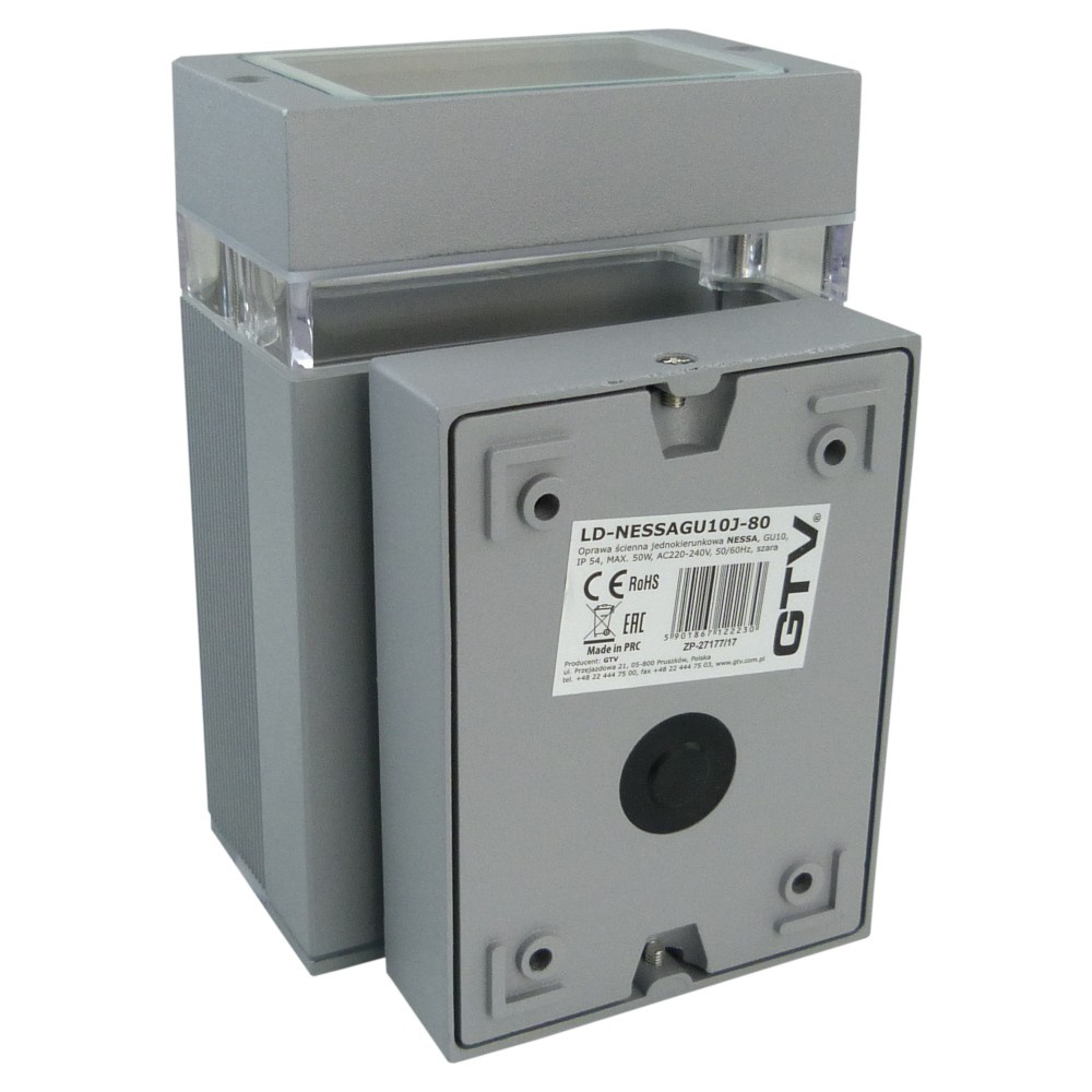 Fassadenleuchte GU10 50W IP54 grau up Wandlampe Innen Außenbeleuchtung ohne Leuchtmittel Innen Aussen Wandleuchte Leuchte Lampe Glas Haus Fassade LD-NESSAGU10J-80 GTV