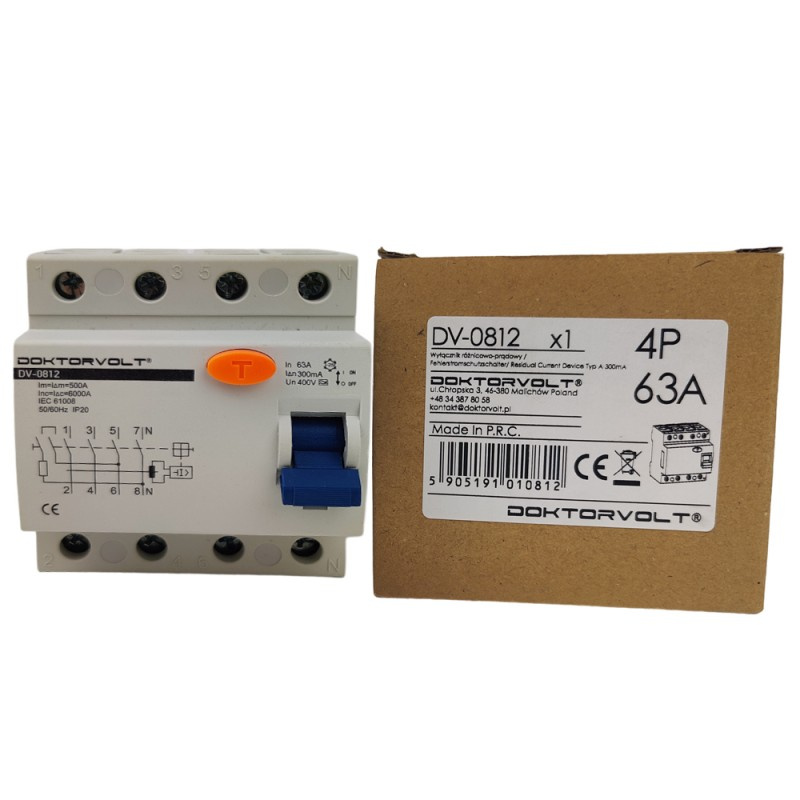 Doktorvolt Fehlerstromschutzschalter Typ A 300mA 63A 4P RCD DV-0812