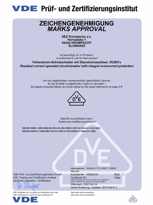 VDE DIN EN 61009-1 DIN EN 61009-2-1 |