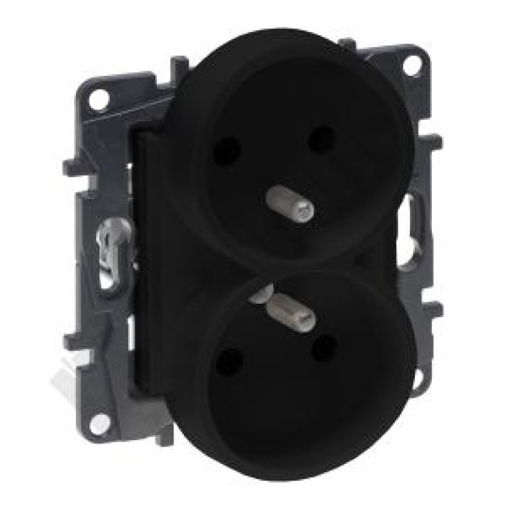 Steckdose 2-fach 2P + E mit Berührungsschutz in der schwarzen Farbe, Niloe Step