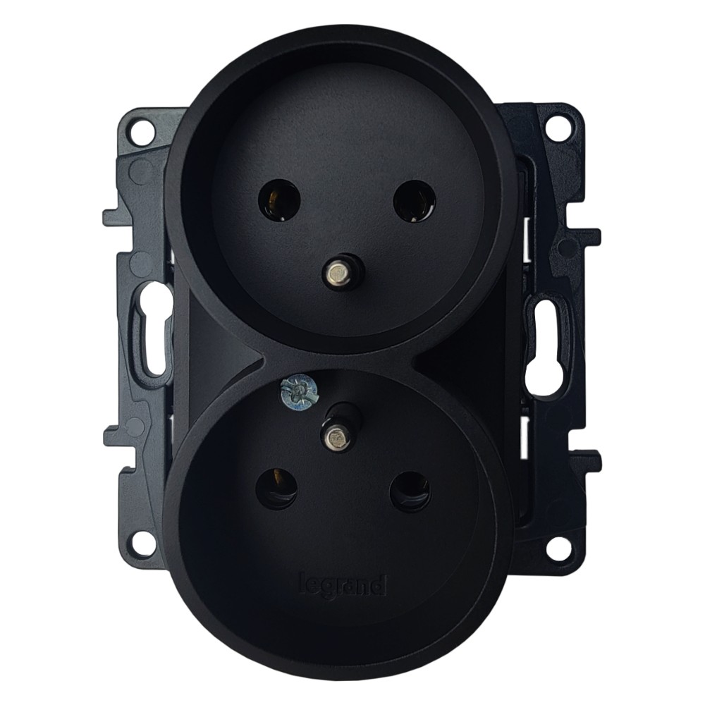 Doppelsteckdose mit Erdung 2x 2P+E franz. System schwarz Niloe Step Legrand 863532