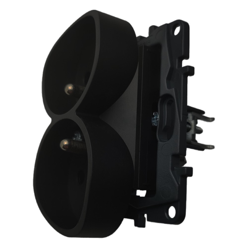 Die doppelte Steckdose für Mehrfachrahmen Typ E ist elegant und modern. Ihre schwarze Farbe passt perfekt zu verschiedenen Innenräumen und verleiht ihnen einen besonderen Charakter.