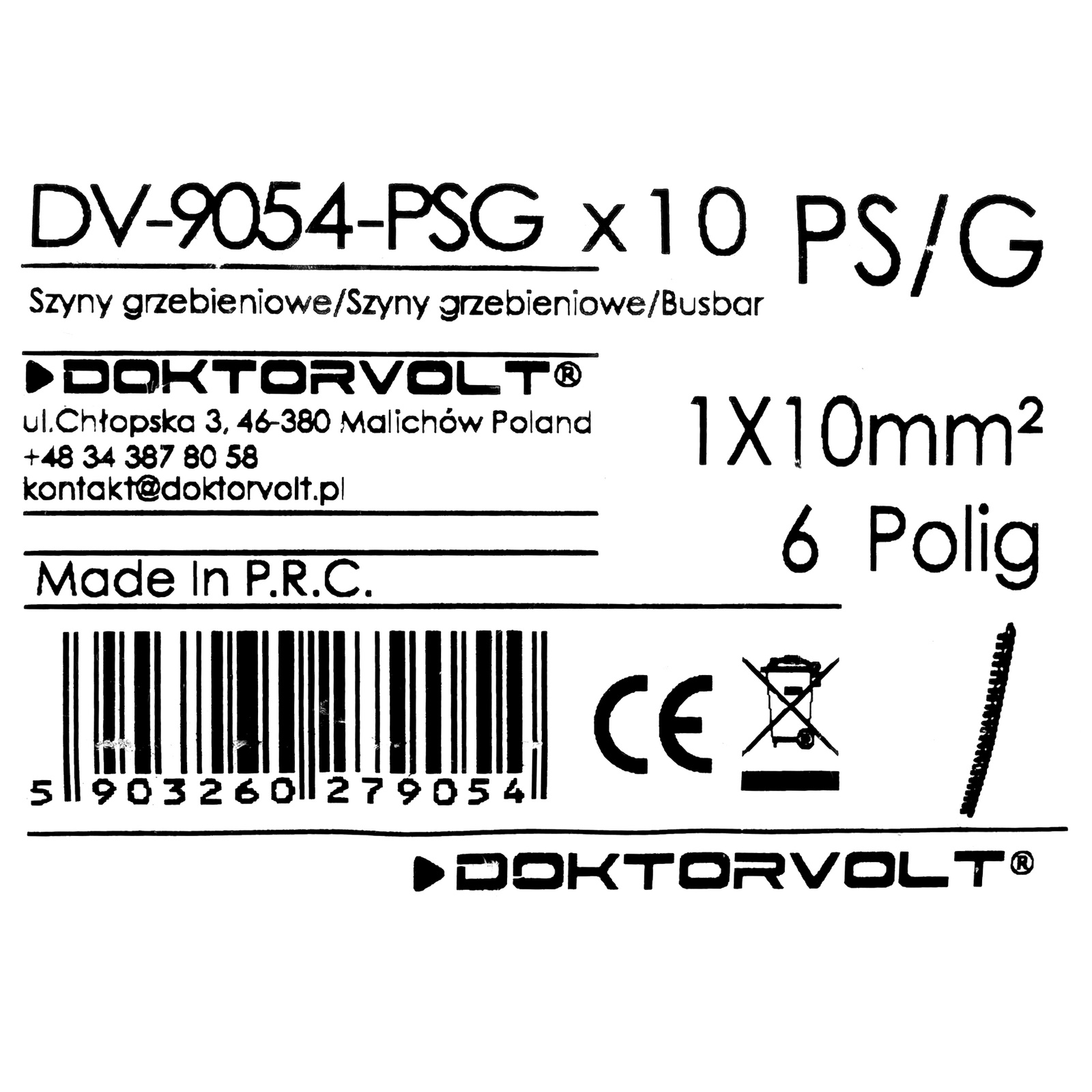 1P Phasenschiene Gabel 6-polig 10mm2 PS/G Schiene Sammelschiene 63A DV-9054-PSG