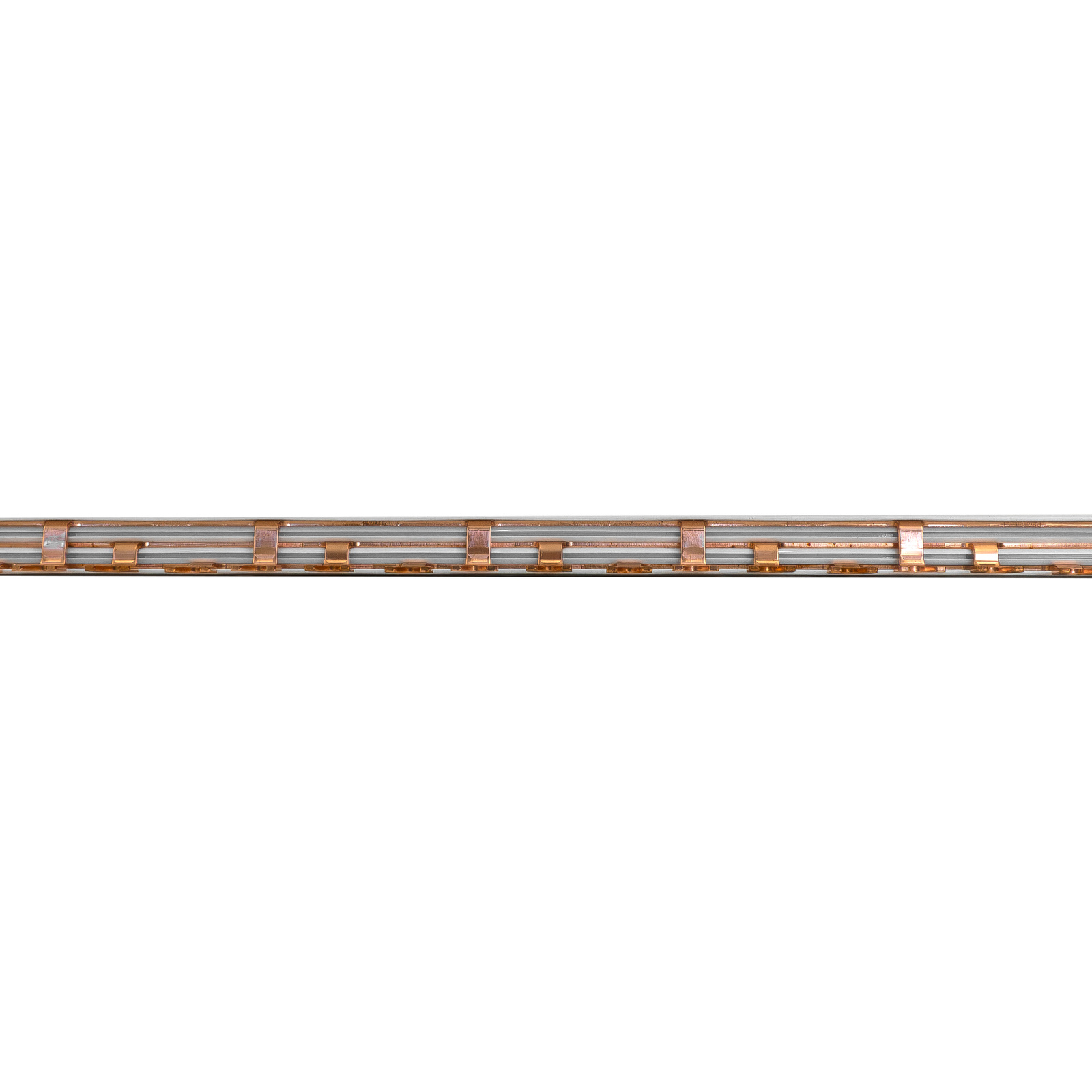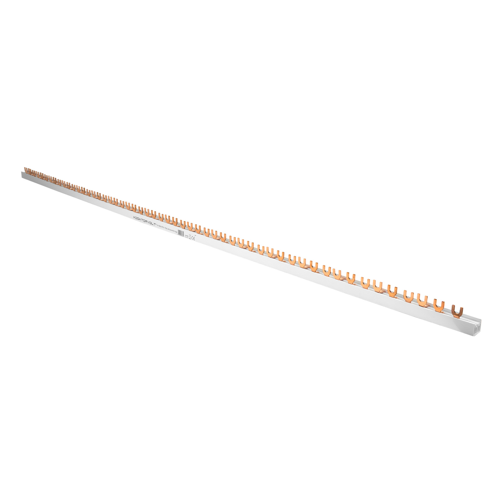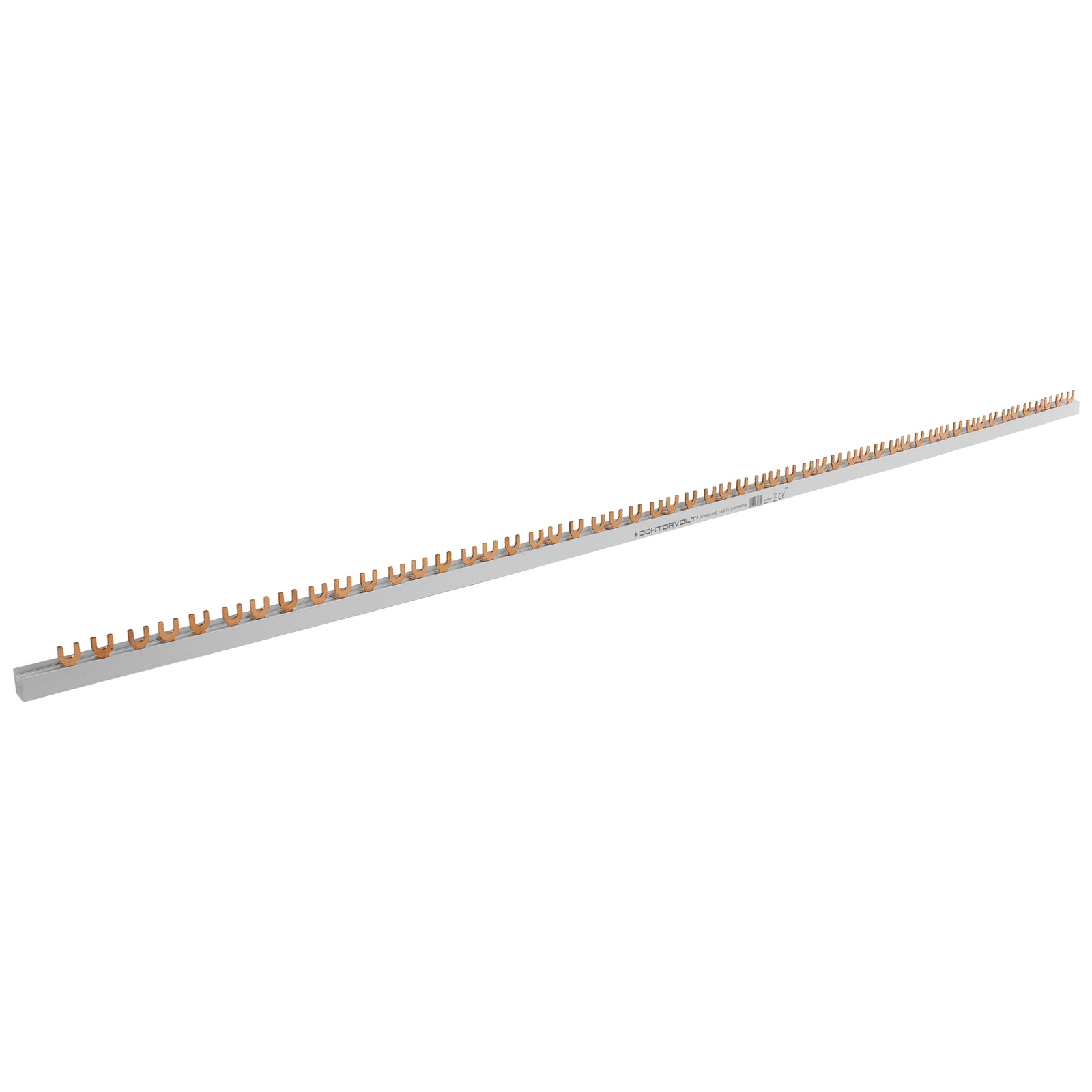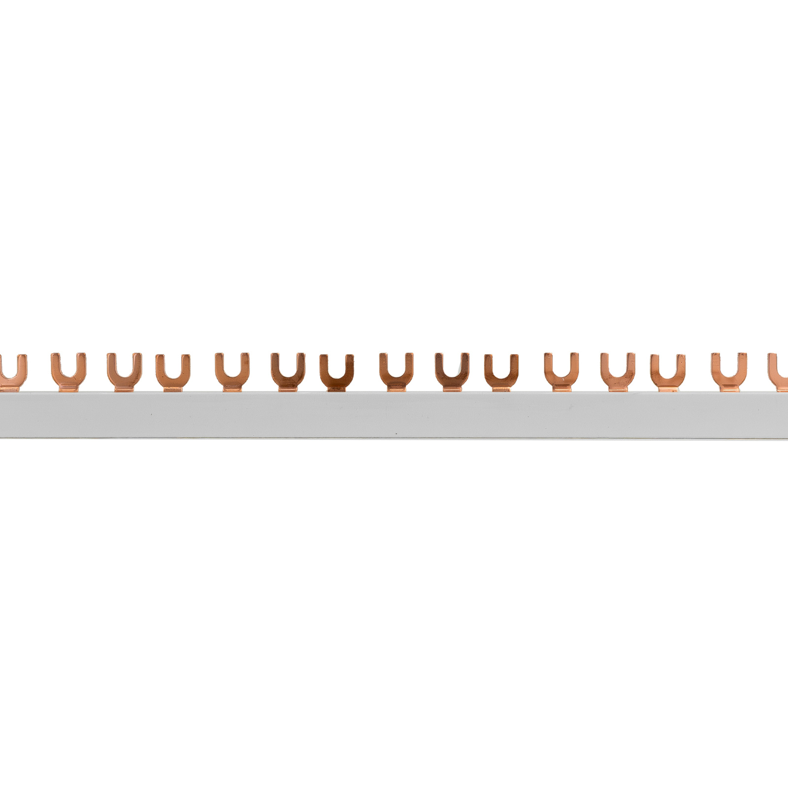 - 3P-Bus mit weißer Oberfläche, 100 cm lang, 12 mm² Querschnitt - für die Versorgung von 54 Modulen in anspruchsvollen Systemen. Bis 80 A belastbar, ideal für große Verteilerschränke im Bau- und Industriebereich.