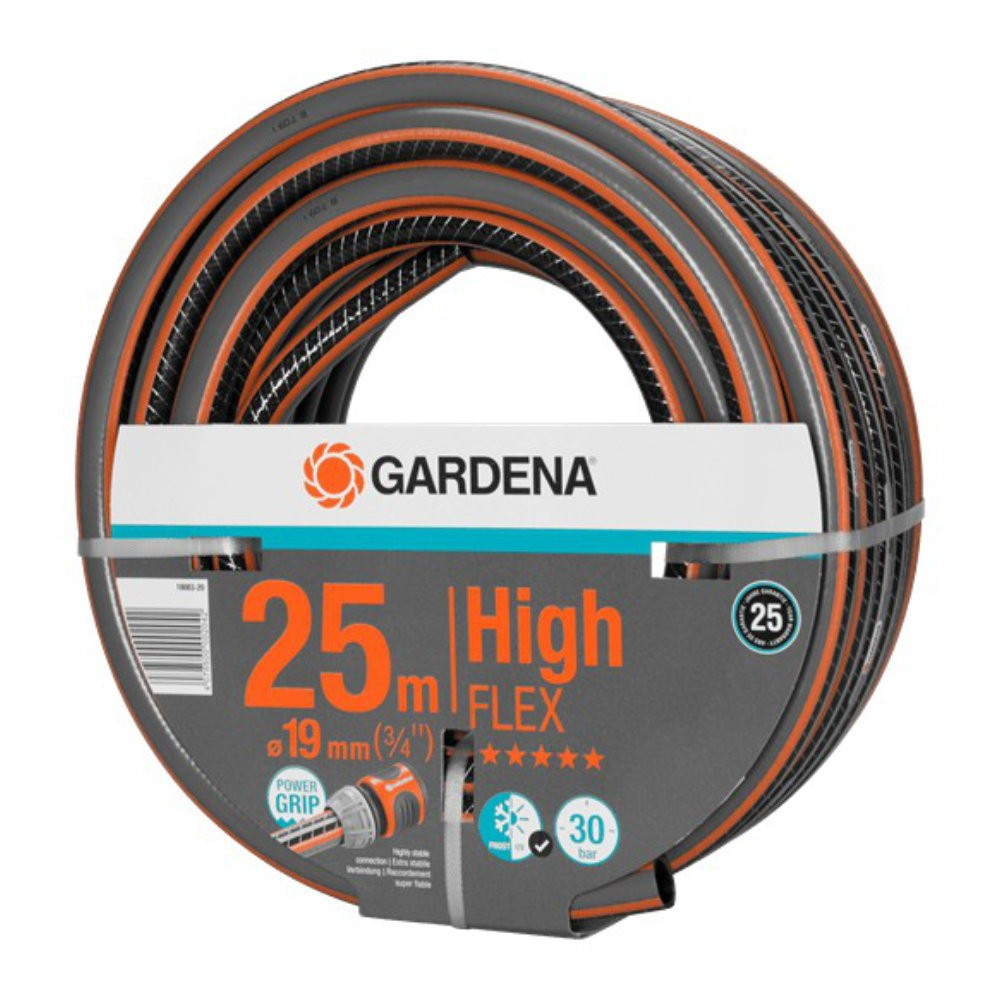 - Gartenschlauch 3/4" 19mm mit einer Länge von 25m. Dank seiner Spieralen Form ist er beständig gegen Verdrehung und erleichtert die Verwendung.