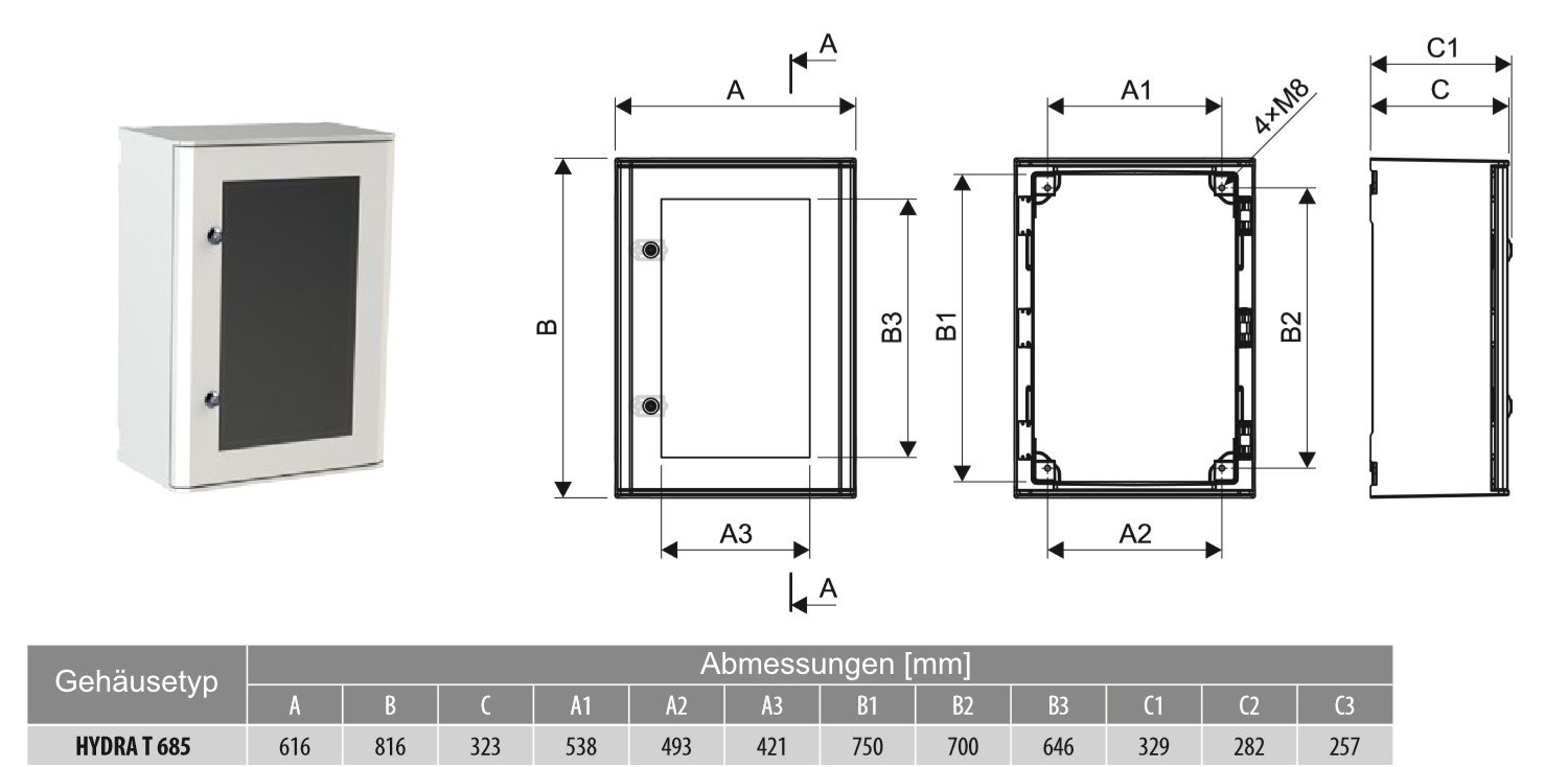 Gehäuse Schaltschrank Leergehäuse Verteilerkasten HYDRA T 685 IP65 transparente Tür