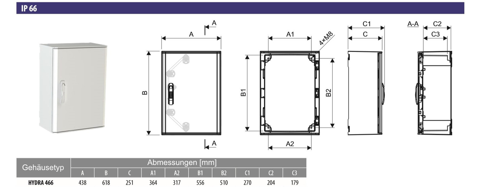 Gehäuse Schaltschrank Leergehäuse Verteilerkaste HYDRA 466 IP66
