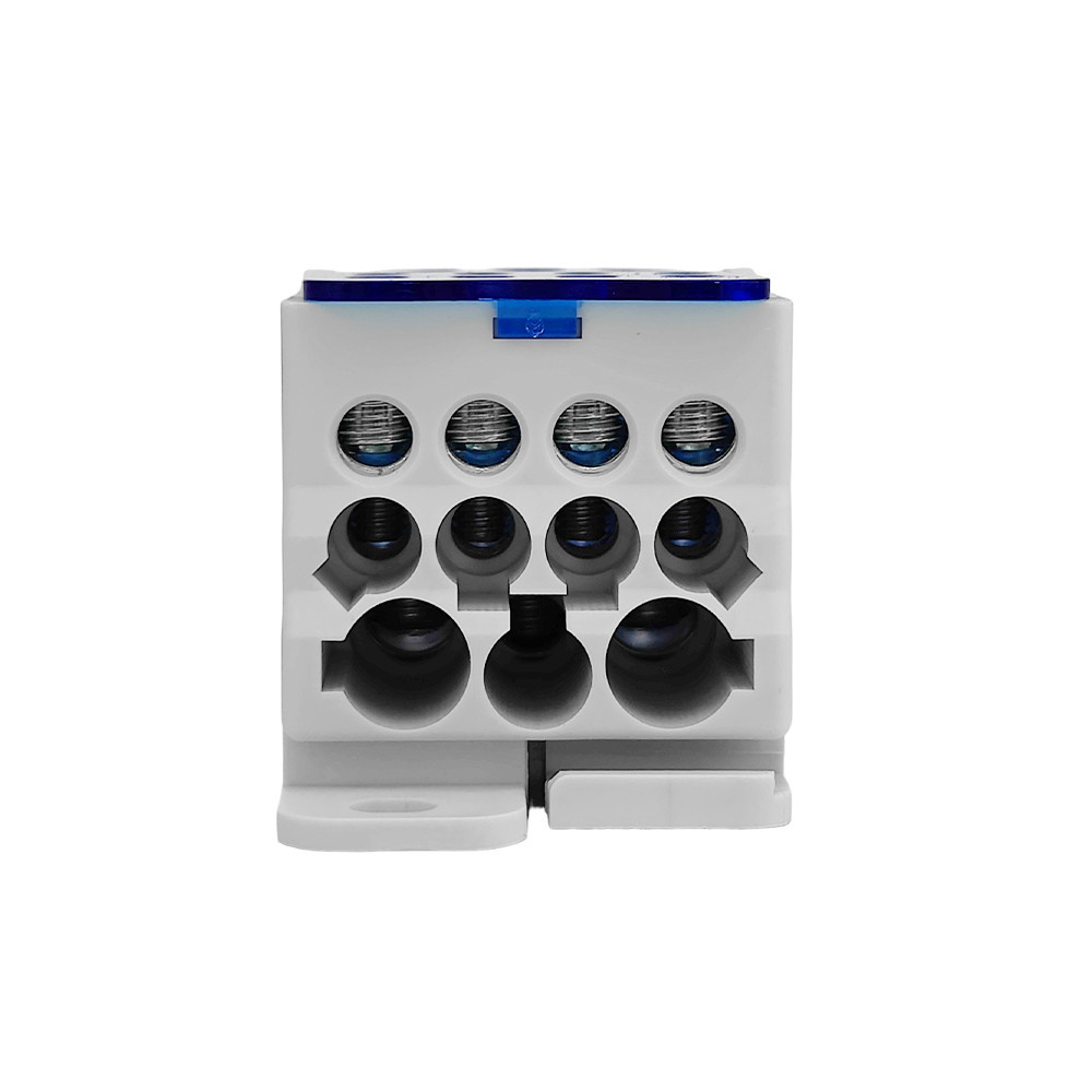 Der Verteilerblock LK DTB arbeitet mit einer Vielzahl von Geräten. Aufgrund seiner Eigenschaften eignet er sich sowohl für den Einsatz in modernen als auch in älteren Elektroinstallationen. Die beiliegende Anleitung führt den Leser übersichtlich durch die Installationsschritte. Die einfache Montage des Verteilerblocks spart Zeit und Installationskosten. Der modulare Verteilerblock LK DTB 185 dient zum Abzweigen von Leitungen mit größerem Querschnitt auf mehrere Leitungen mit kleinerem Querschnitt. Er ist in 1-poliger Ausführung mit 12 Klemmeneinheiten erhältlich. Die Schrauben können mit einem Innensechskantschlüssel und einem Schraubendreher PH 2 angezogen werden. Die Verteilerbrücken haben eine leicht zu öffnende, transparente obere Abdeckung aus blauem Kunststoff. Die Oberfläche der Schrauben, die mit dem Leiter in Berührung kommen, ist speziell modifiziert, um die Verformung des Leiters zu minimieren und gleichzeitig die Dichtigkeit so hoch wie möglich zu halten. Die Montage erfolgt auf einer Tragschiene TH 35 und entspricht EN 60947-7-1.