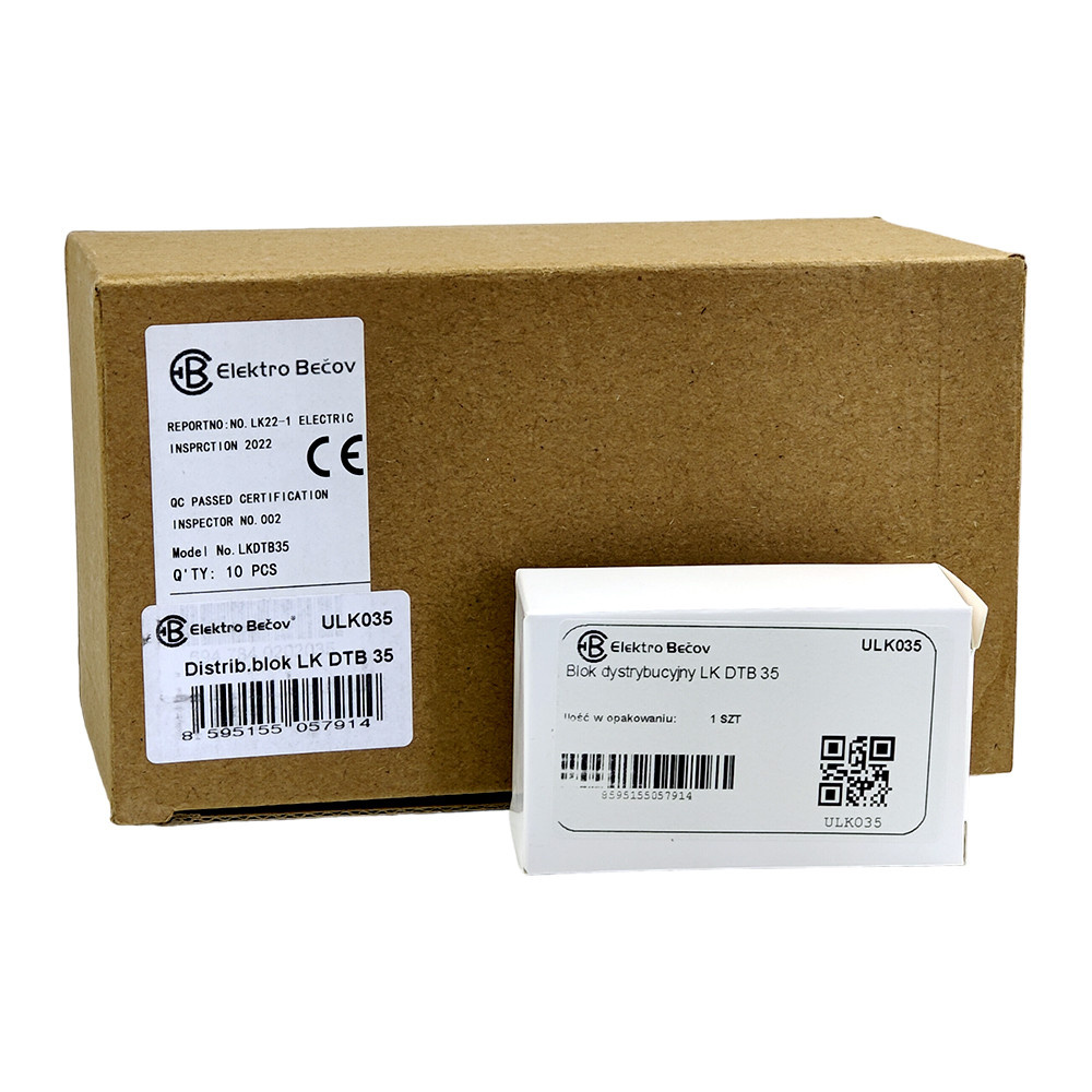 Der Verteilerblock LK DTB arbeitet mit einer Vielzahl von Geräten. Aufgrund seiner Eigenschaften eignet er sich sowohl für den Einsatz in modernen als auch in älteren Elektroinstallationen. Die beiliegende Anleitung führt den Leser übersichtlich durch die Installationsschritte. Die einfache Montage des Verteilerblocks spart Zeit und Installationskosten. Der modulare Verteilerblock LK DTB 35 dient zum Abzweigen von Leitungen mit größerem Querschnitt auf mehrere Leitungen mit kleinerem Querschnitt. Er ist in 1-poliger Ausführung mit 8 Klemmeneinheiten erhältlich. Die Schrauben können mit einem Innensechskantschlüssel und einem Schraubendreher PH 2 angezogen werden. Die Verteilerbrücken haben eine leicht zu öffnende, transparente obere Abdeckung aus blauem Kunststoff. Die Oberfläche der Schrauben, die mit dem Leiter in Berührung kommen, ist speziell modifiziert, um die Verformung des Leiters zu minimieren und gleichzeitig einen möglichst festen Anzug zu gewährleisten. Die Montage erfolgt auf einer Tragschiene TH 35 und entspricht EN 60947-7-1.