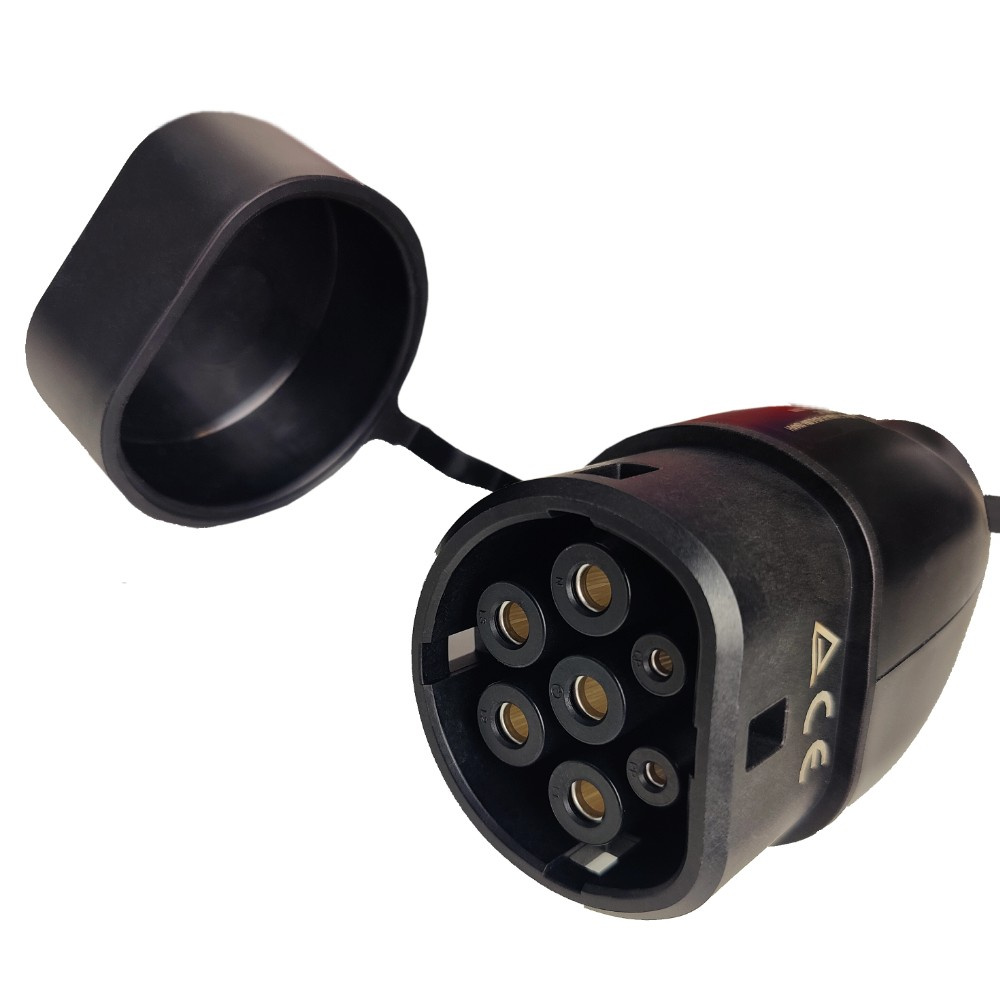 Das Ladegerät ist mit einem 5 Meter langen Kabel ausgestattet, das mit einem Typ 2 Stecker versehen ist. Es ist ein europäischer Standard, weshalb Sie sich keine Sorgen über die Kompatibilität mit Ihrem Elektroauto machen müssen, da dieser universelle Stecker zu den meisten auf dem Markt bekannten Elektro- und Hybridfahrzeugen Plug-in passt.