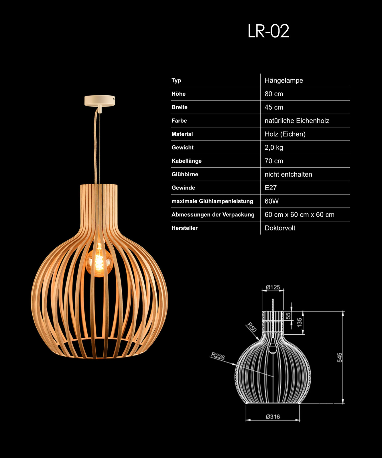 Hängelampe Decken Lampe Holz Eiche Beleuchtung Doktorvolt DV-6139-LR-02