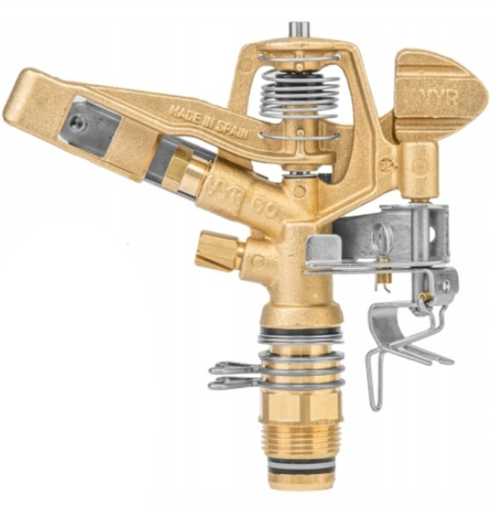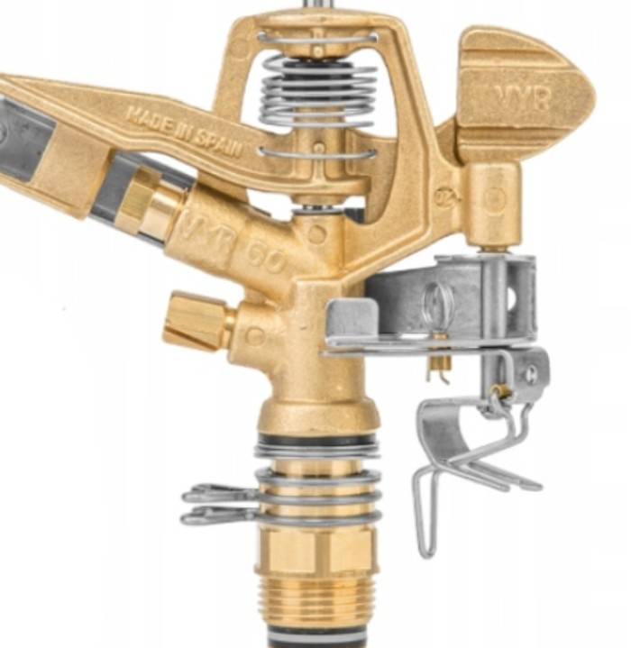 Verstellbarer Sprinkler mit gepulstem rotierendem Sektor aus Messing mit 3/4"-Außengewinde, zur Montage auf einem Dorn oder einem Stativ. Es hat eine stabile Konstruktion, die eine lange und zuverlässige Nutzung garantiert. Der Sprinkler kann von 20° bis 360° eingestellt werden. Der maximale Durchmesser des Sprinklers beträgt 35 m.