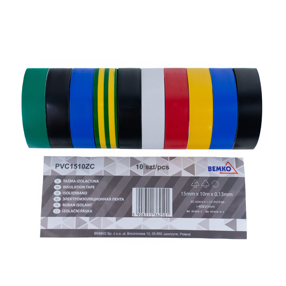 Klebeband Mehrfarbiges Isolierband 15x10m SET E30-PVC1510ZC