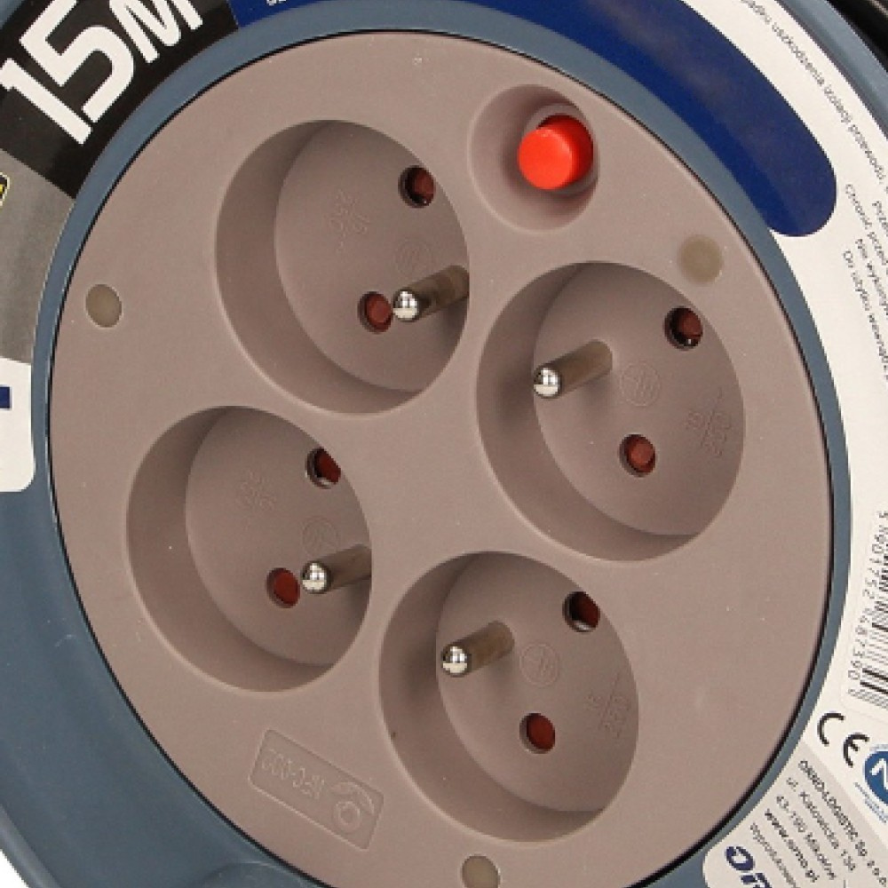 Kabeltrommel Verlängerungskabel franz. System MINI grau 3x1mm² 15m 4x2P+E OR-AE-1339/G