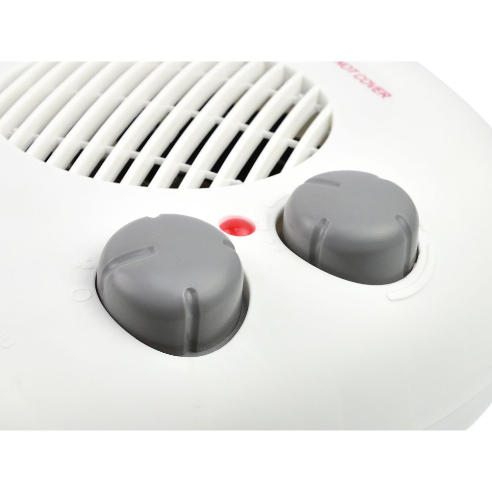 - Elektrischer Heizlüfter mit einer maximalen Leistung von 2000W. Er zeichnet sich durch eine extrem schnelle Erwärmung aus und einen einstellbaren Thermostat.