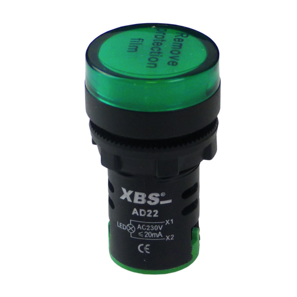 XBS grün LED Leuchtmelder Kontrolleuchte Signal- Lampe Licht 22mm 230V AD22-GREEN230