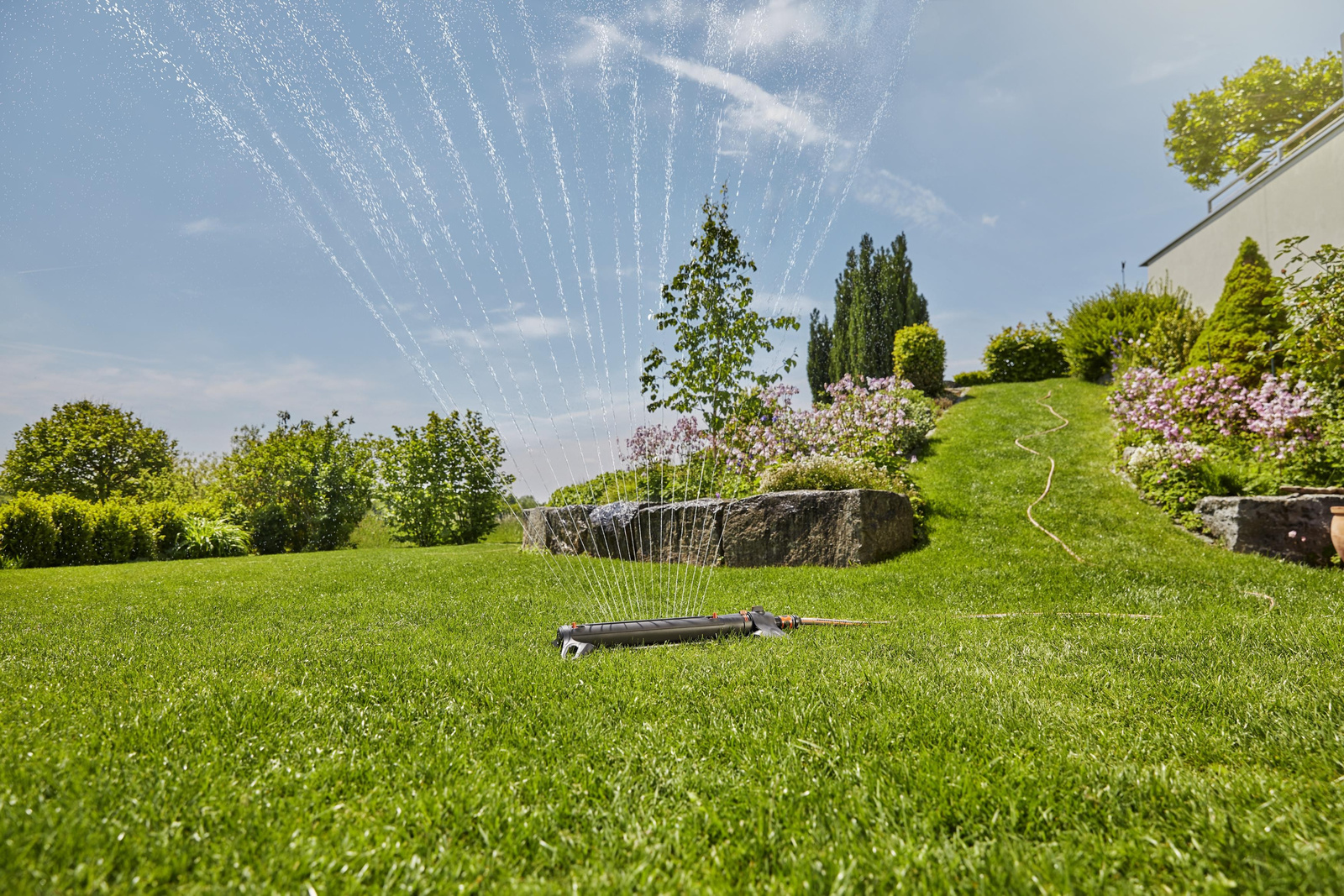 - Der Regner ist für Flächen von 28 bis 350 m² geeignet, bei denen eine gleichmäßige Bewässerung sehr wichtig ist. Der Rasensprenger ist frost- und UV-beständig.