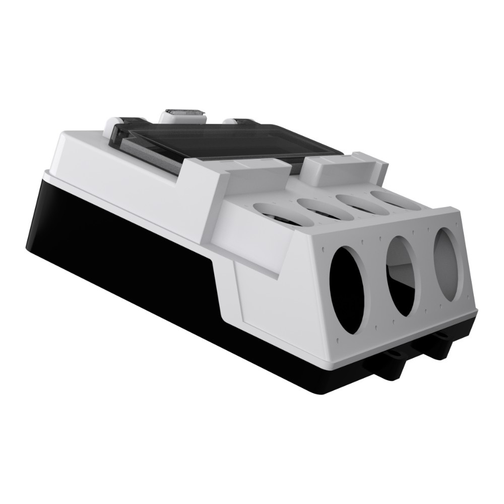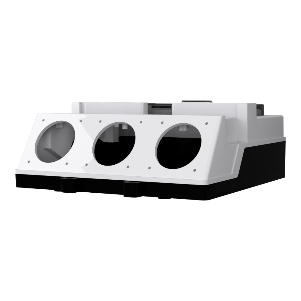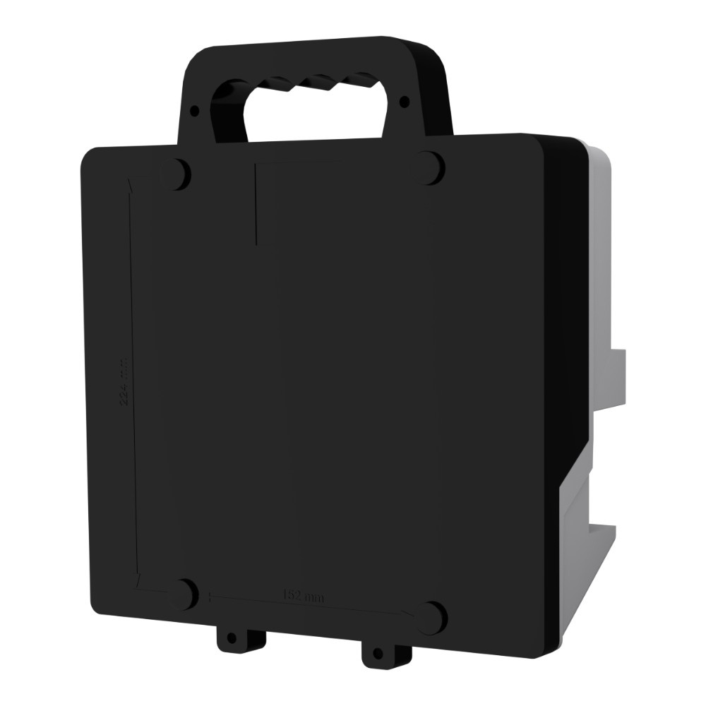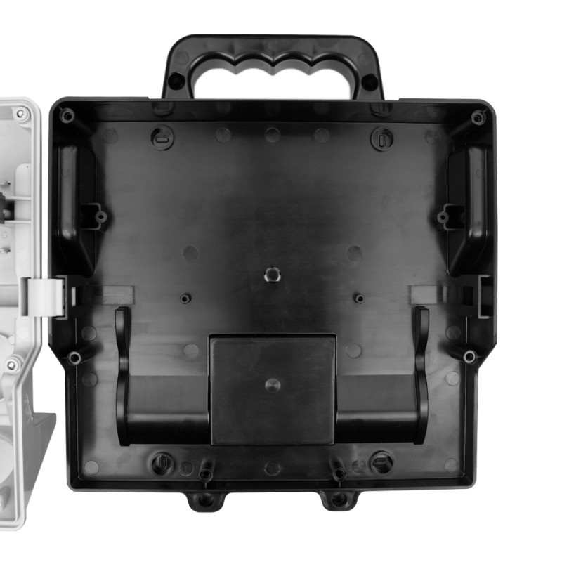 Gehäuse aus Technopolymer, Frontplatte in Grau RAL 7035, Rückplatte in Schwarz.
