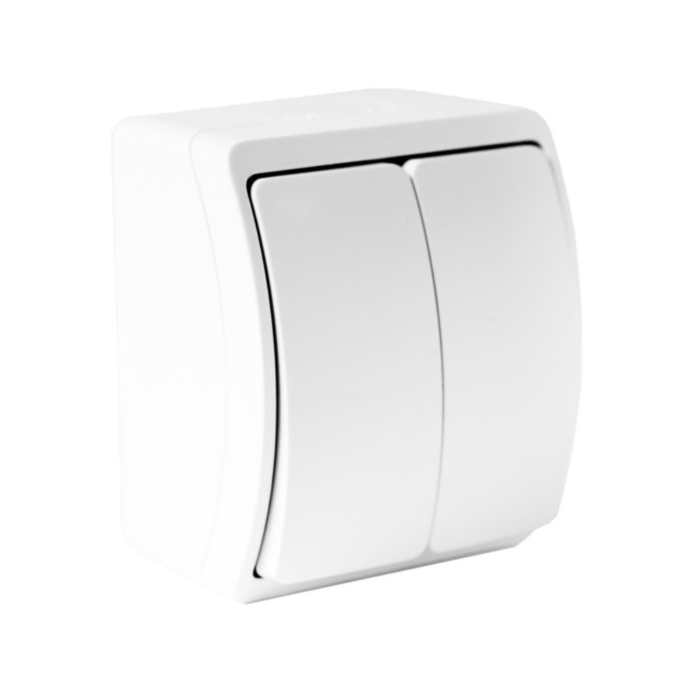 Doppelschalter Doppel Ein- und Ausschalter Aufputz weiß IP44 Schalter Wippe Lichtschalter