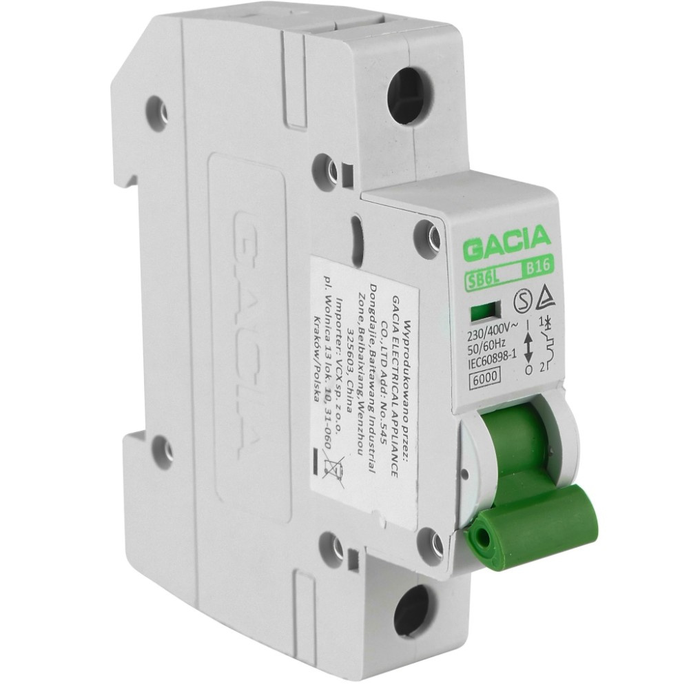 Leitungsschutzschalter B16A 1-polig 6kA Sicherungsautomat LS-Schalter GACIA SB6L B 1P 16A